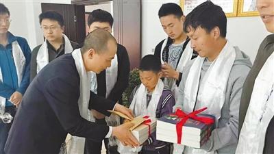 援藏人員在介紹沙布村孤兒和貧困大學生生活學習近況