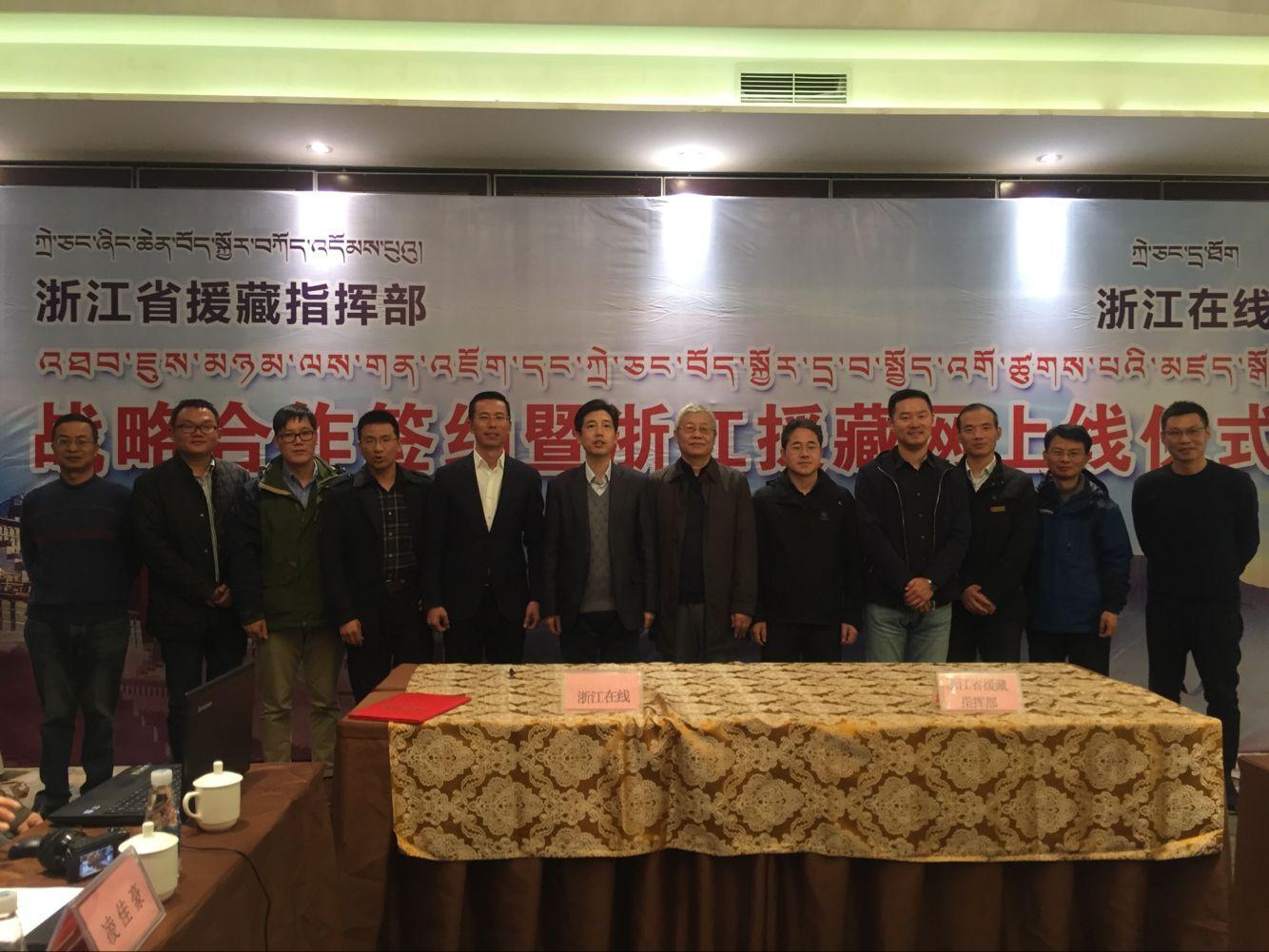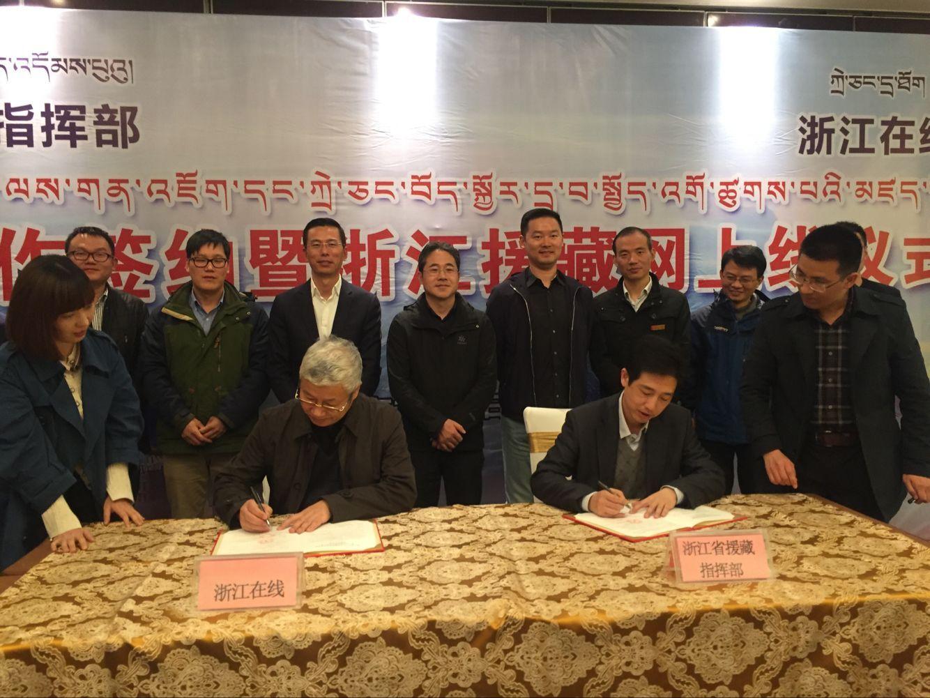 浙江省援藏指揮部黨委書記、指揮長、那曲地委副書記陳澄和浙江在線副總編輯丁榮毅,共同簽訂“浙江援藏網”戰略合作協議