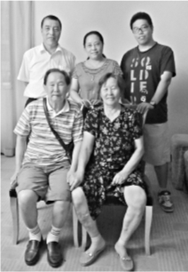 楊紅梅(后排中)一家與養(yǎng)父母合照