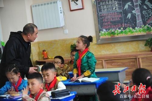 劉文全在班上來回走動,俯身檢查學生的發音是否準確,發現問題及時糾正。朗讀結束,數十雙小手高高舉起,不管誰來回答,劉文全都會走到學生的面前,做出“請”的手勢:“請你來說說。”待學生回答完畢,他彎下腰輕拍學生肩膀,表揚他的積極。