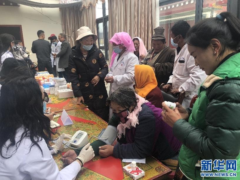 援藏醫生為村民量血壓。新華網發(王宇翀攝)