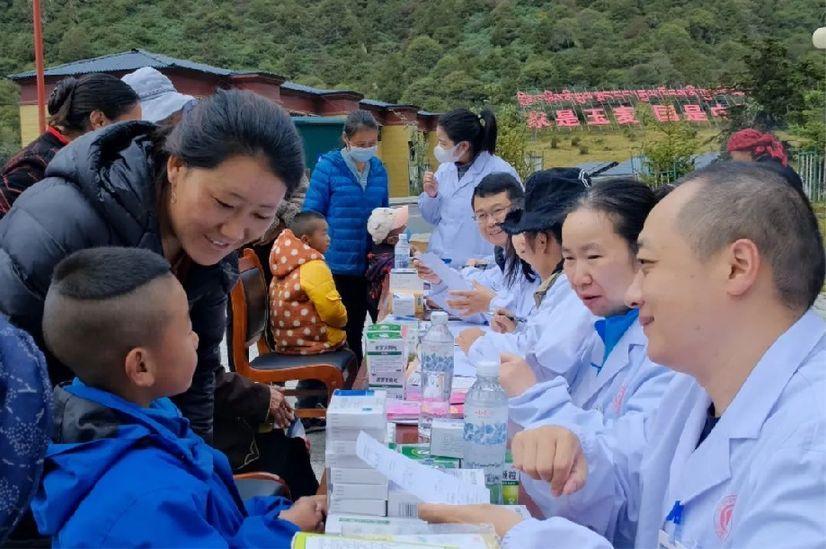 圖為:湖北醫療援藏專家團隊赴隆子縣玉麥鄉開展義診活動