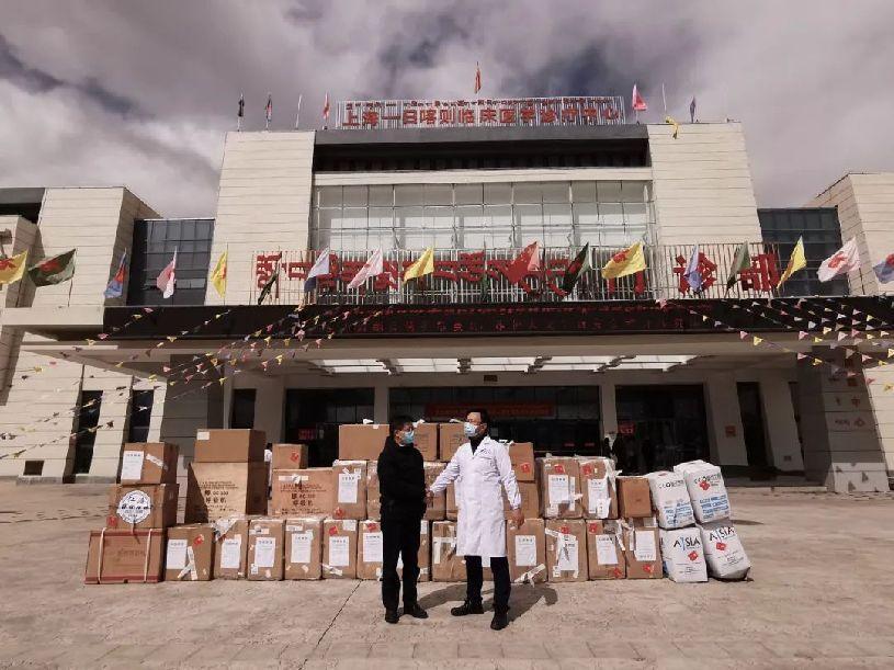 圖為:上海援藏工作隊向日喀則市人民醫院捐贈一批防疫物資