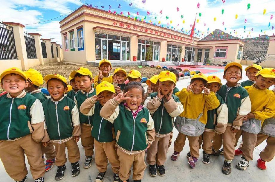 圖為:山東援藏工作隊為桑珠孜區援建的28所鄉村標準化幼兒園—江當鄉雷貴村幼兒園的小朋友們