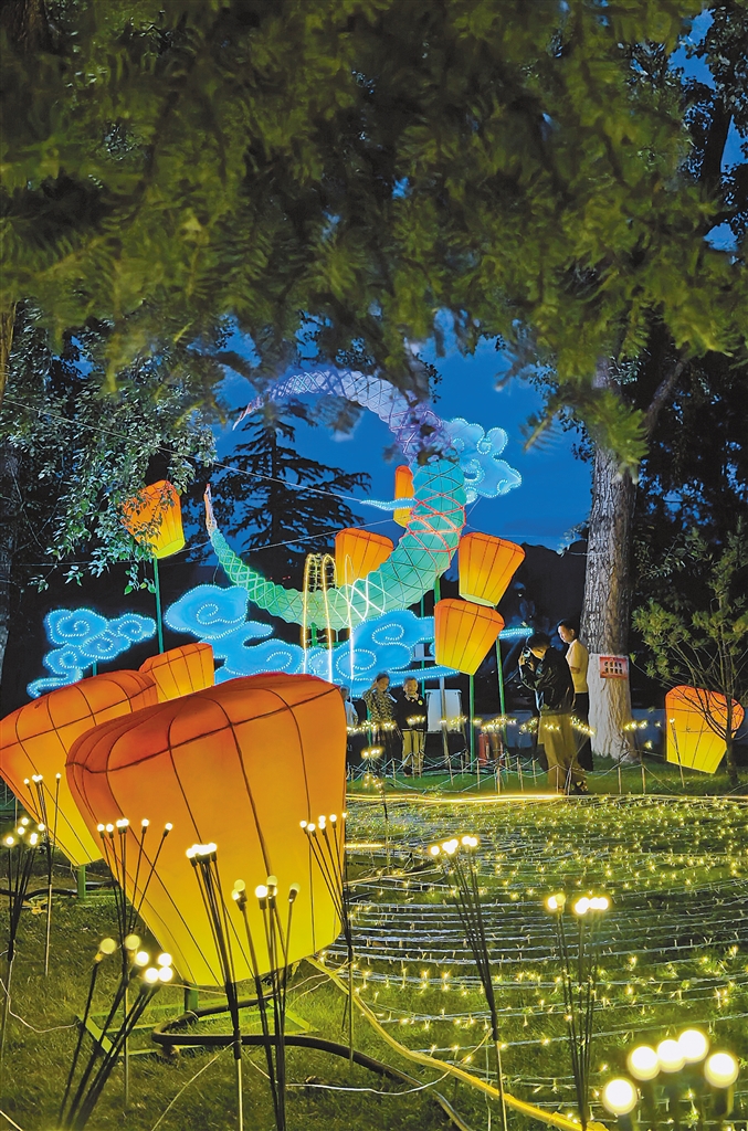 夜幕降臨,華燈初上,人們或結(jié)伴出行,或舉家前往,一邊散步一邊賞燈,遇到喜愛的花燈樣式,拿出手機拍攝,發(fā)到網(wǎng)上與朋友一同分享燈展的美妙和樂趣。