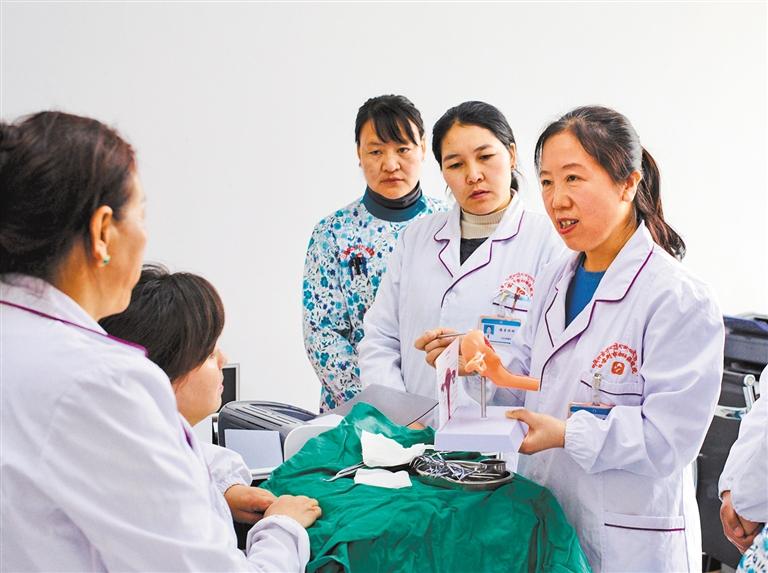 4月17日,山東援藏醫療專家、日喀則市婦幼保健院婦女保健部主任孔艷(右一)在現場帶教。在山東援藏的幫扶下,該院成功創建二甲醫院。袁勇 攝(中經視覺)