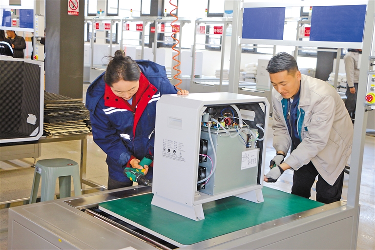 湖北援藏企業西藏清匠電器科技有限公司的工人正在組裝制氧機。