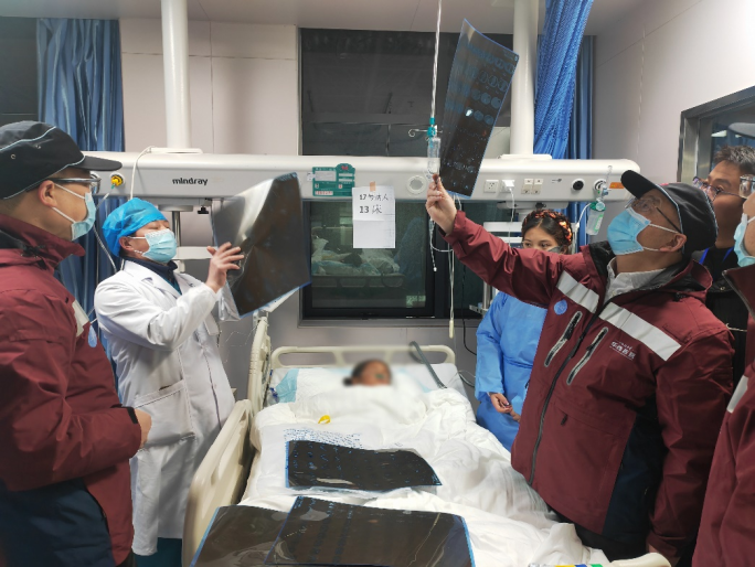當日中午,華西醫院西藏醫院的3名專家主動請纓攜帶移動CT車,與華西醫院本部派出的6名專家于當晚分別抵達當地執行地震傷員救治任務。日喀則海拔超過3800米,余震不斷,大家一邊吸氧一邊討論病情,工作從早上持續到晚上。一名多發骨折的82歲老人經過接力救治脫離生命危險;一名因胸廓受壓繼發缺血缺氧性腦水腫的5歲孩子從死亡線上被拉了回來。