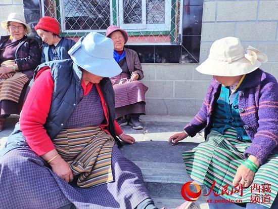寬闊整潔的村道旁楊柳已吐出嫩芽,迎著陽光生機勃發。幾位老人坐在家門口曬著太陽玩“阿布朵”(擲石子),笑容始終掛在臉上。