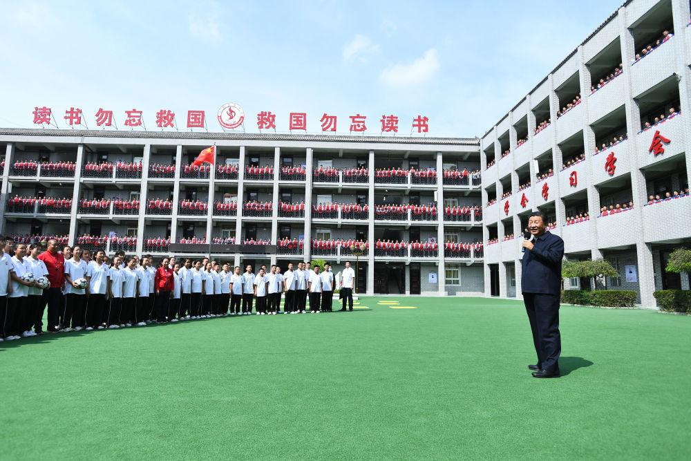 ↑2021年9月14日,習(xí)近平在陜西省榆林市綏德實(shí)驗(yàn)中學(xué)考察時(shí),同師生親切交流。
