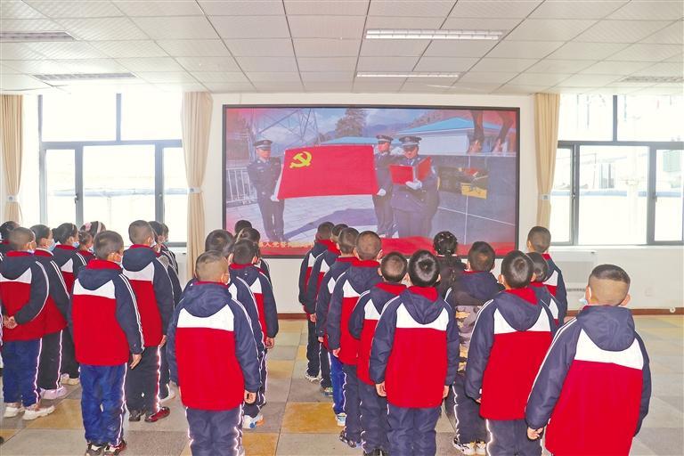 圖為該所利用多媒體大屏對學生進行愛國主義教育。崔哲浩 記者 趙文慧 攝