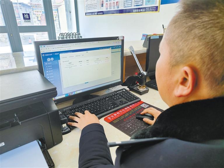 圖為該所民警利用戶政專網審批群眾加油證明材料。 崔哲浩 記者 趙文慧 攝