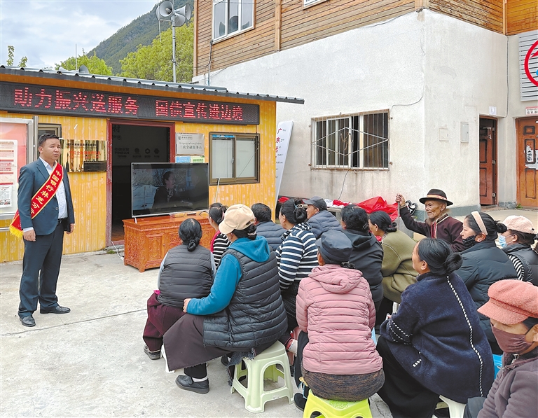 圖為組織農牧民群眾觀看電影。本報記者 袁海霞 攝