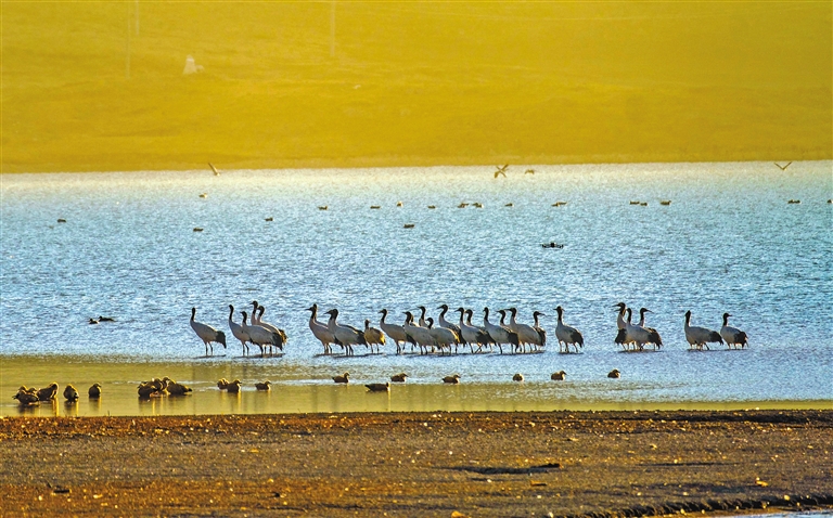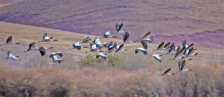 “生態(tài)好不好,看鳥(niǎo)就知道?!苯眨谖鞑卦蕉摹袄吓笥选焙陬i鶴越來(lái)越多。每年3月中旬,黑頸鶴會(huì)從越冬地——雅江中游河谷及其支流拉薩河、年楚河流域的“一江兩河”地區(qū),飛去羌塘北部草原等地繁育后代;10月中下旬又從繁殖地——那曲的班戈縣、申扎縣、嘉黎縣,阿里的日土縣、普蘭縣,日喀則的昂仁縣及拉薩的當(dāng)雄縣返回到越冬地。黑頸鶴的成群遷徙、停歇或繁殖,正是生態(tài)環(huán)境持續(xù)向好的“最美注腳”。