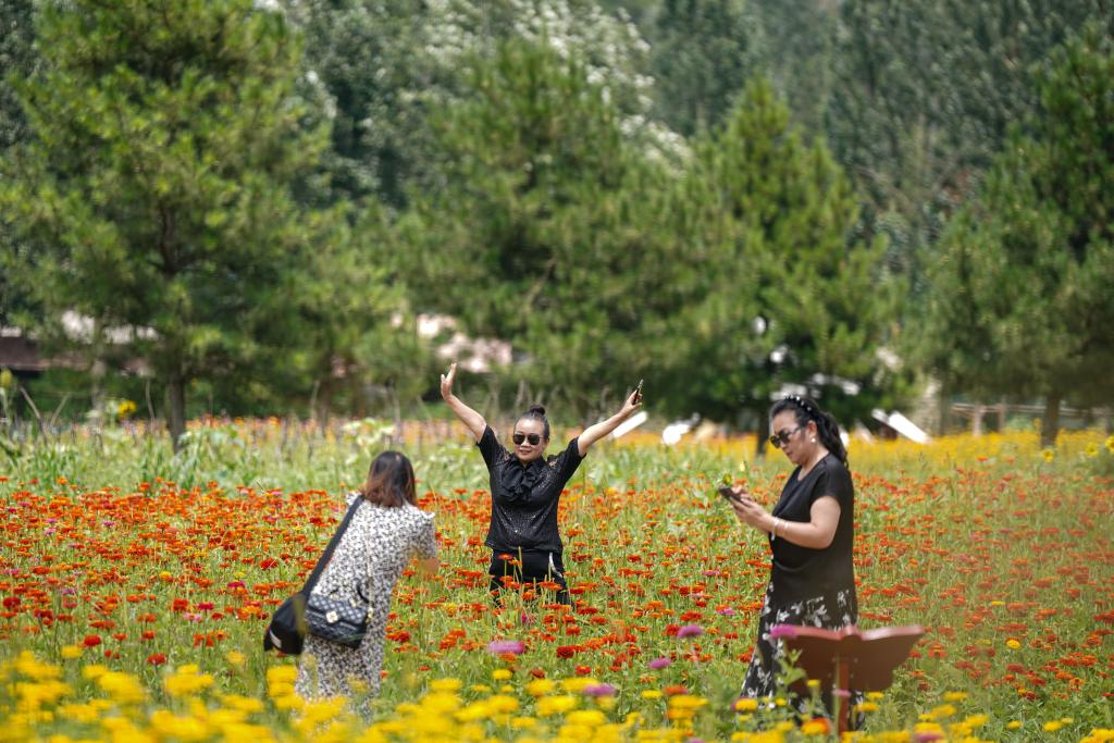游客在南泥灣國家濕地公園內(nèi)游玩(7月29日攝)。新華社記者 樊雨晴 攝
