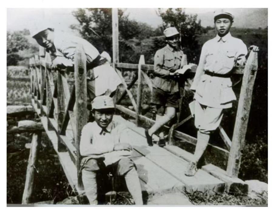 新四軍戰(zhàn)士在橋上合影。(葉挺攝)