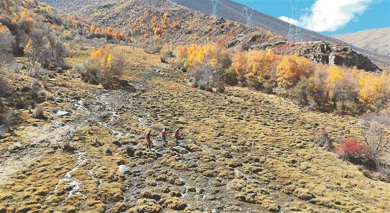 圖為拉薩市墨竹工卡縣日多鄉護林隊在開展巡山工作。記者 格桑倫珠 攝