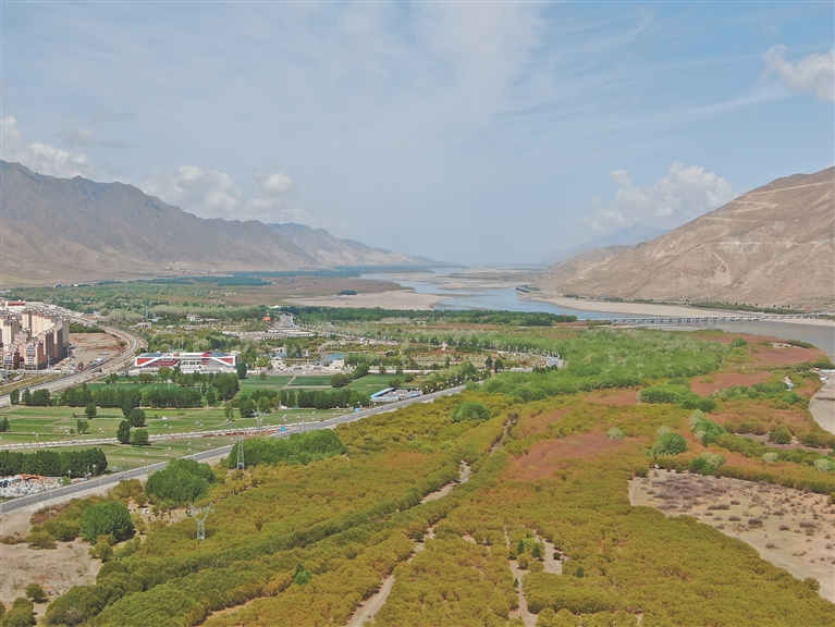 圖為臨近山南市區的雅魯藏布江沿岸綠意蔥蘢的人造林(資料圖片)。 記者 巴桑旺姆 攝