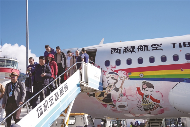 游客抵達(dá)林芝米林機(jī)場。資料圖