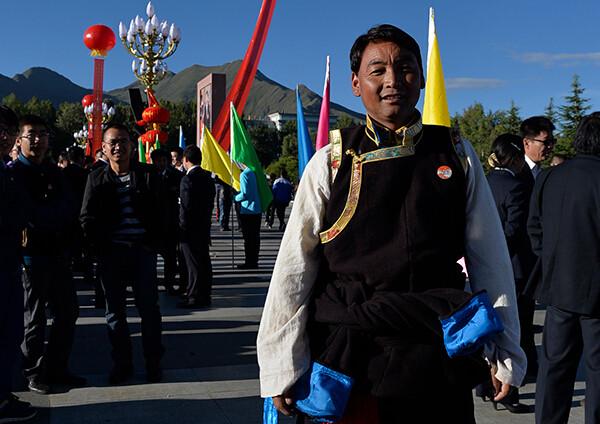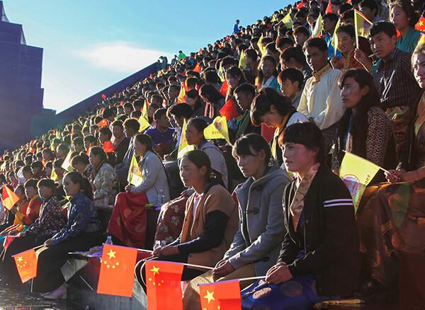今年是西藏自治區成立50周年。9月8日上午10時,西藏自治區成立50周年慶祝大會在拉薩市布達拉宮廣場舉行。圖為到達大會現場的觀禮群眾。新華網 劉東君 攝