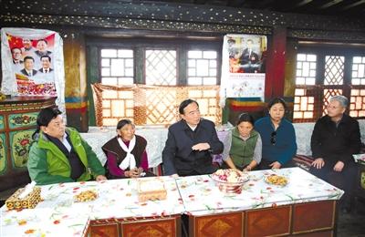 陳全國、白瑪赤林十分牽掛貧困群眾的生活情況。他們來到八一鎮公眾村75歲的貧困戶扎西旺姆家中,關切地了解一家人的收入來源、社會保障、家庭困難等情況。 聽說在政府的幫助下,家里剛剛蓋起了新房,通過外出打工和畜牧養殖,一年有8000多元的收入。陳全國、白瑪赤林鼓勵他們說,黨中央和習近平總書記非常關 心貧困群眾的生活,制定了一系列幫助大家脫貧致富的好政策。我們一定會落實好,幫大家把脫貧的路子選好,使你們早日富起來、日子盡快好起來。