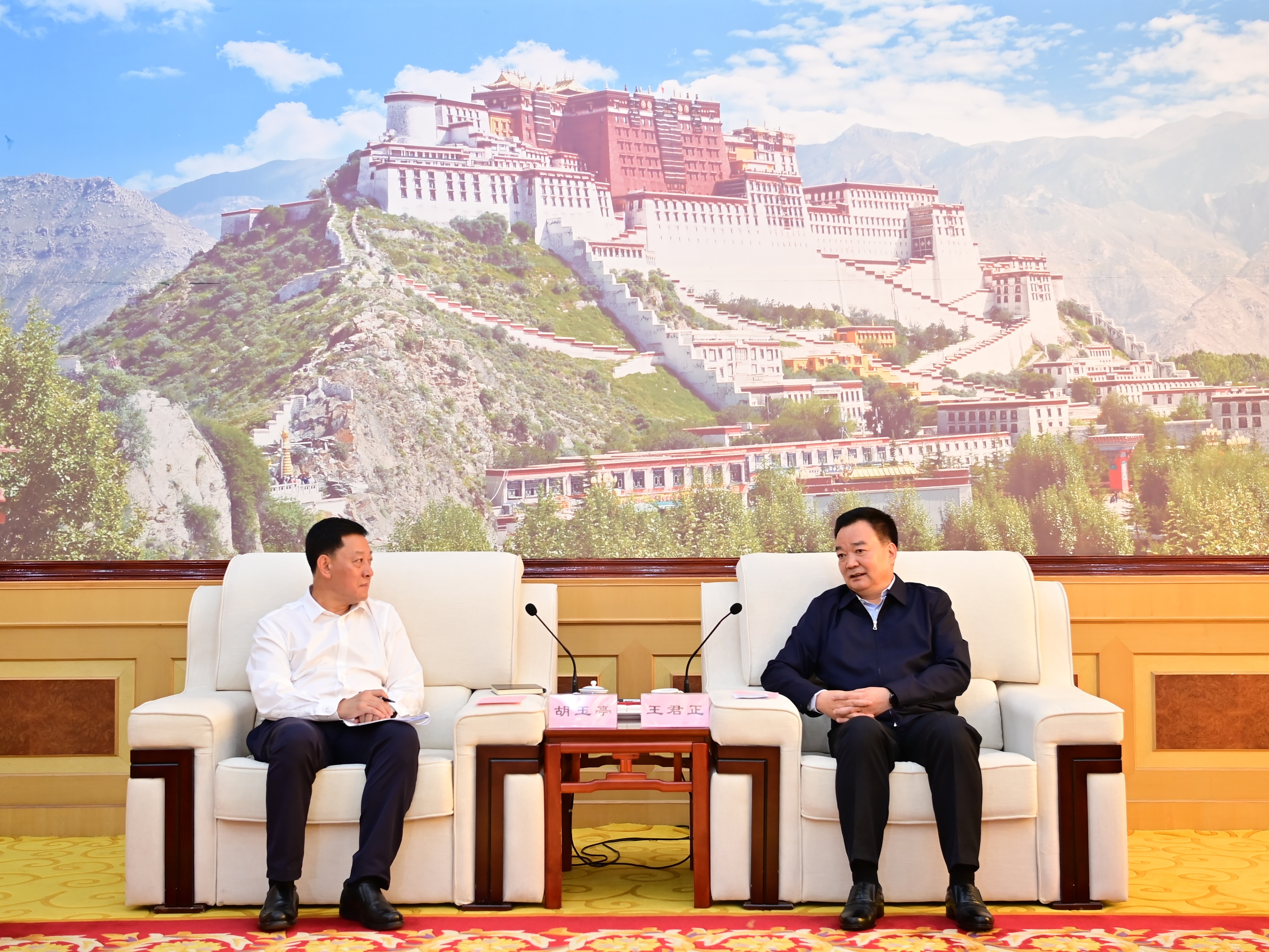 王君正代表自治區黨委、政府對胡玉亭一行赴藏考察表示歡迎。他說,多年來,吉林省站在黨和國家工作全局的高度,深入貫徹落實黨中央決策部署,以高度的思想自覺、政治自覺、行動自覺,求真務實、真抓實干,堅持從小事、具體事做起,統籌協調各方資源,加大對口支援力度,全方位、寬領域、多層次開展援藏工作,為西藏長治久安和高質量發展作出了積極貢獻。