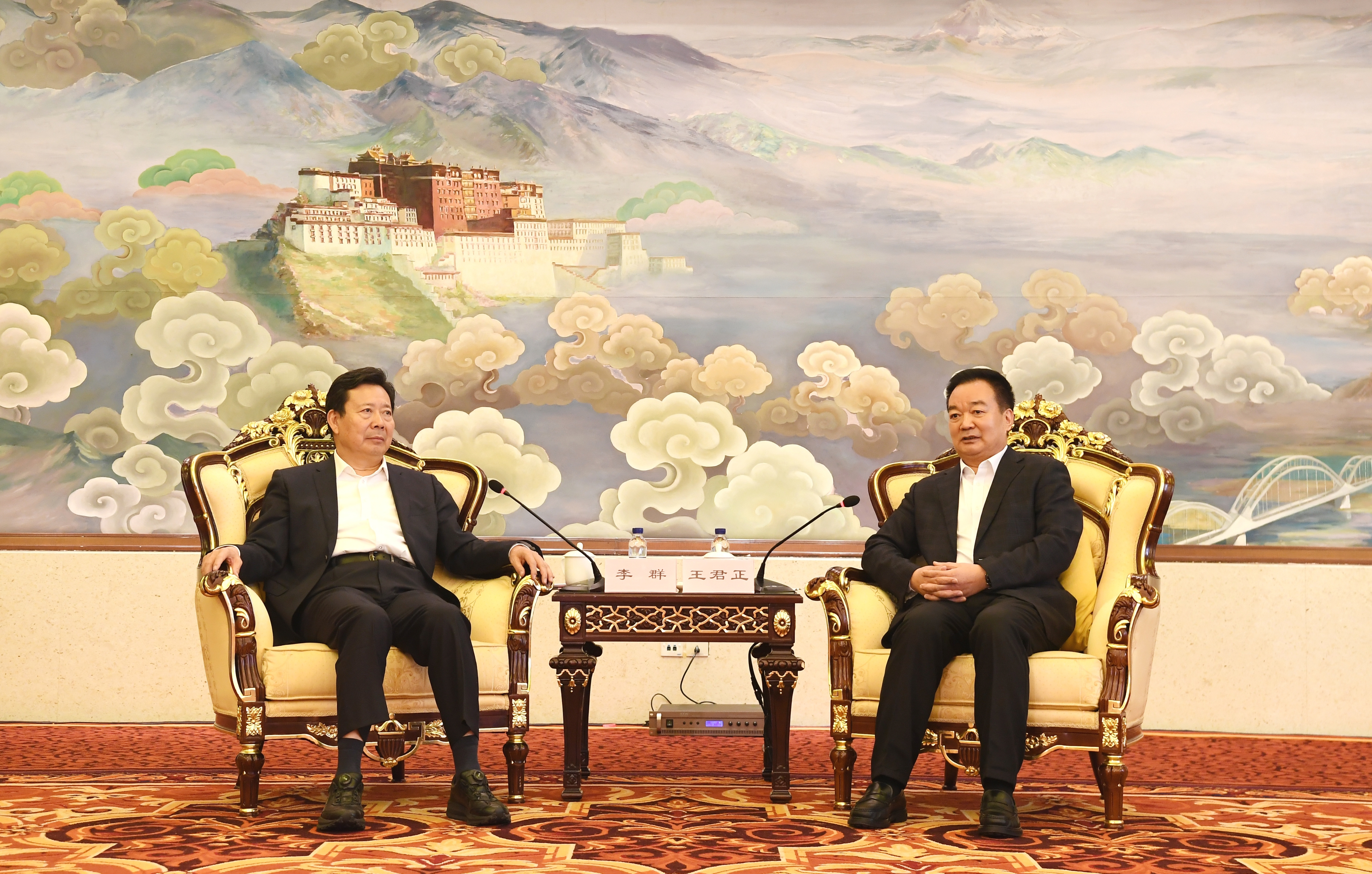 會后,王君正與李群一行就深化拓展文化援藏工作層次和內涵、推動重點文物保護項目建設、加大文物保護力度、加強文博人才培養等進行座談。李群表示,國家文物局將一如既往地重視支持西藏文物工作,進一步加強與西藏的深度合作,加大投入力度,加強人才支撐、加強科技創新、提高文物保護能力,全力支持、服務西藏做好文物保護利用和研究展示工作,助力西藏文物工作開創新局面。