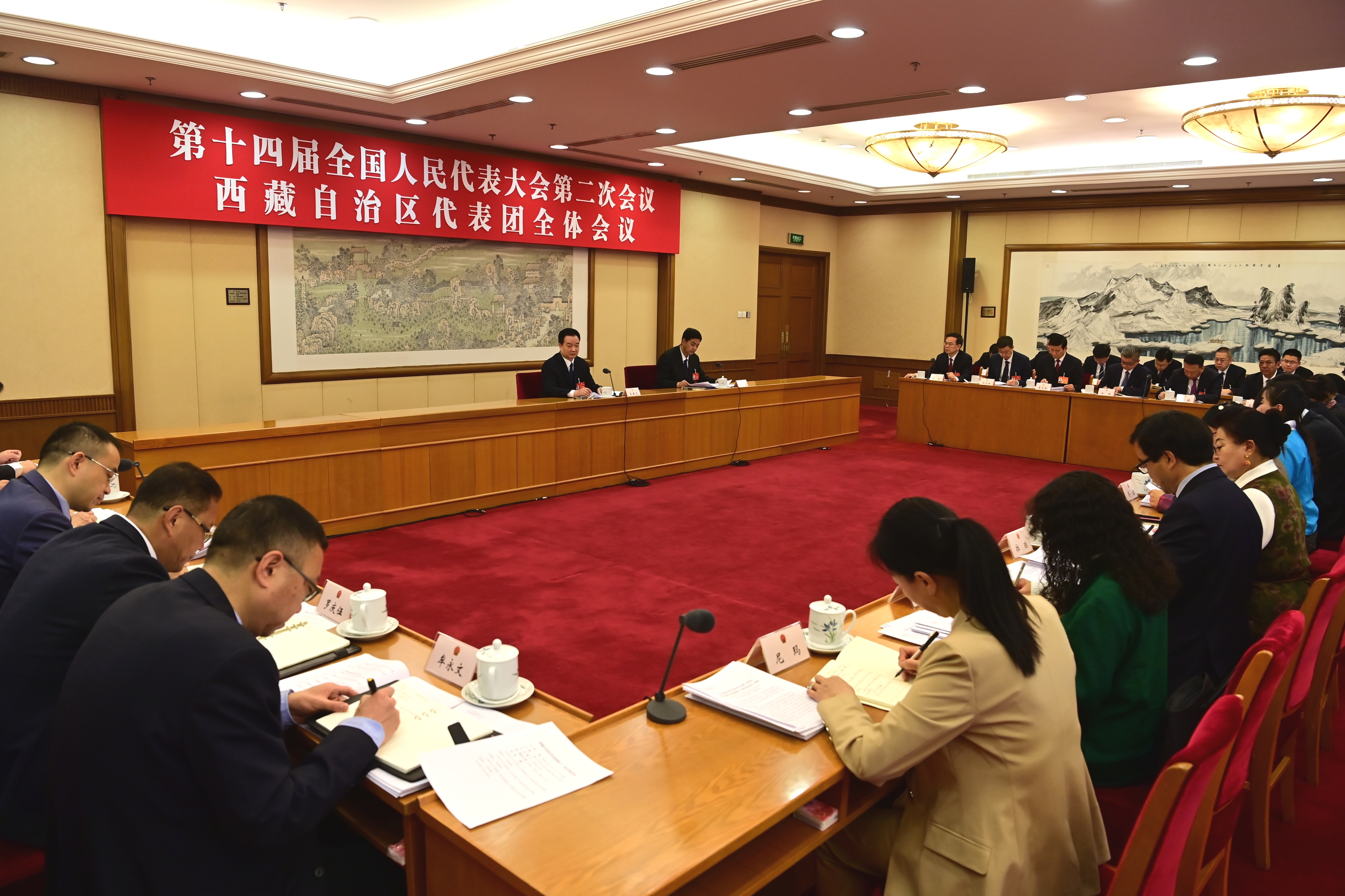 西藏代表團團長、自治區黨委書記王君正主持并講話,西藏代表團副團長、自治區主席嚴金海參加。