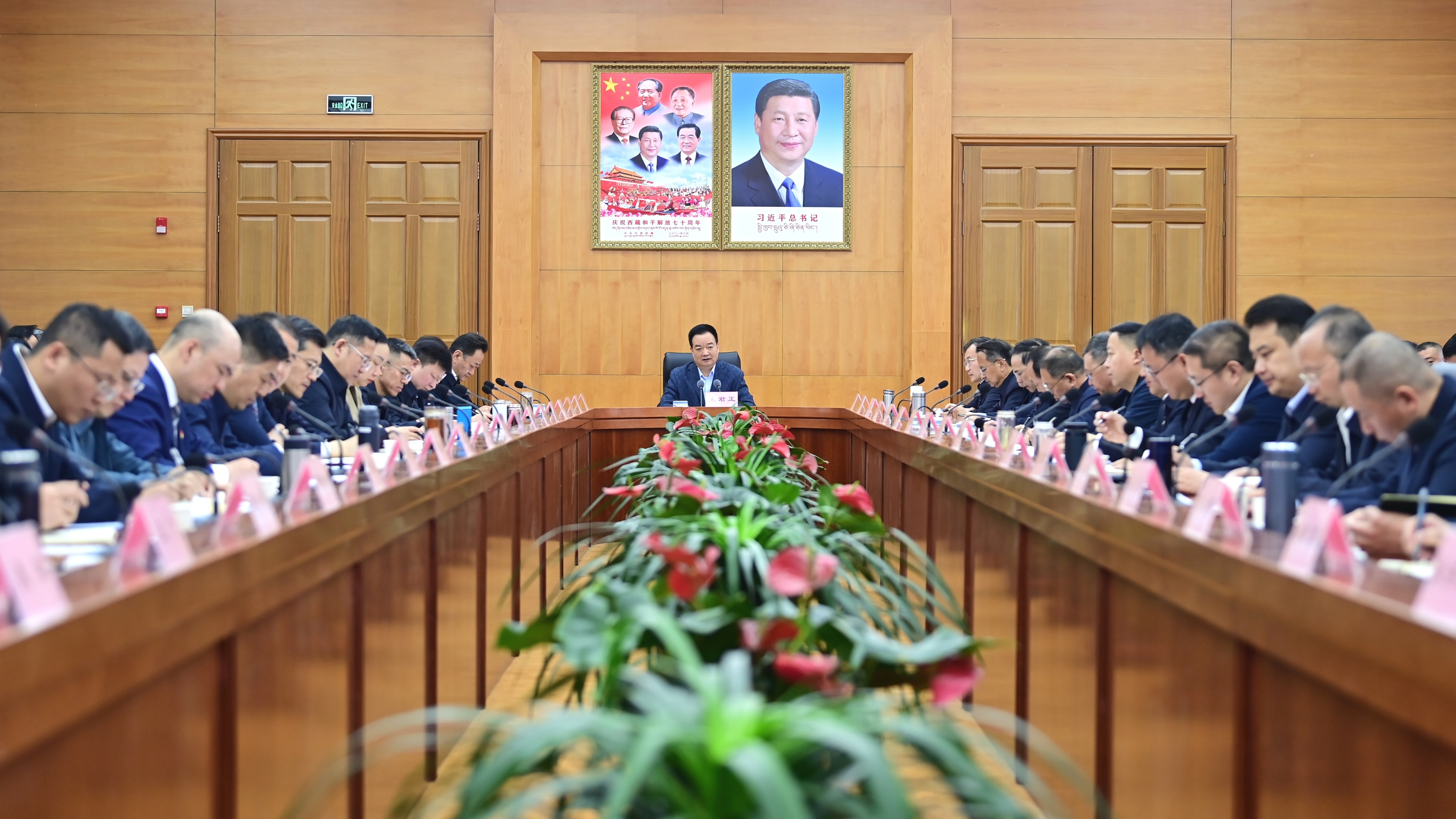 4月8日,自治區黨委書記王君正主持召開全區援藏干部座談會。記者 旦增西旦 攝