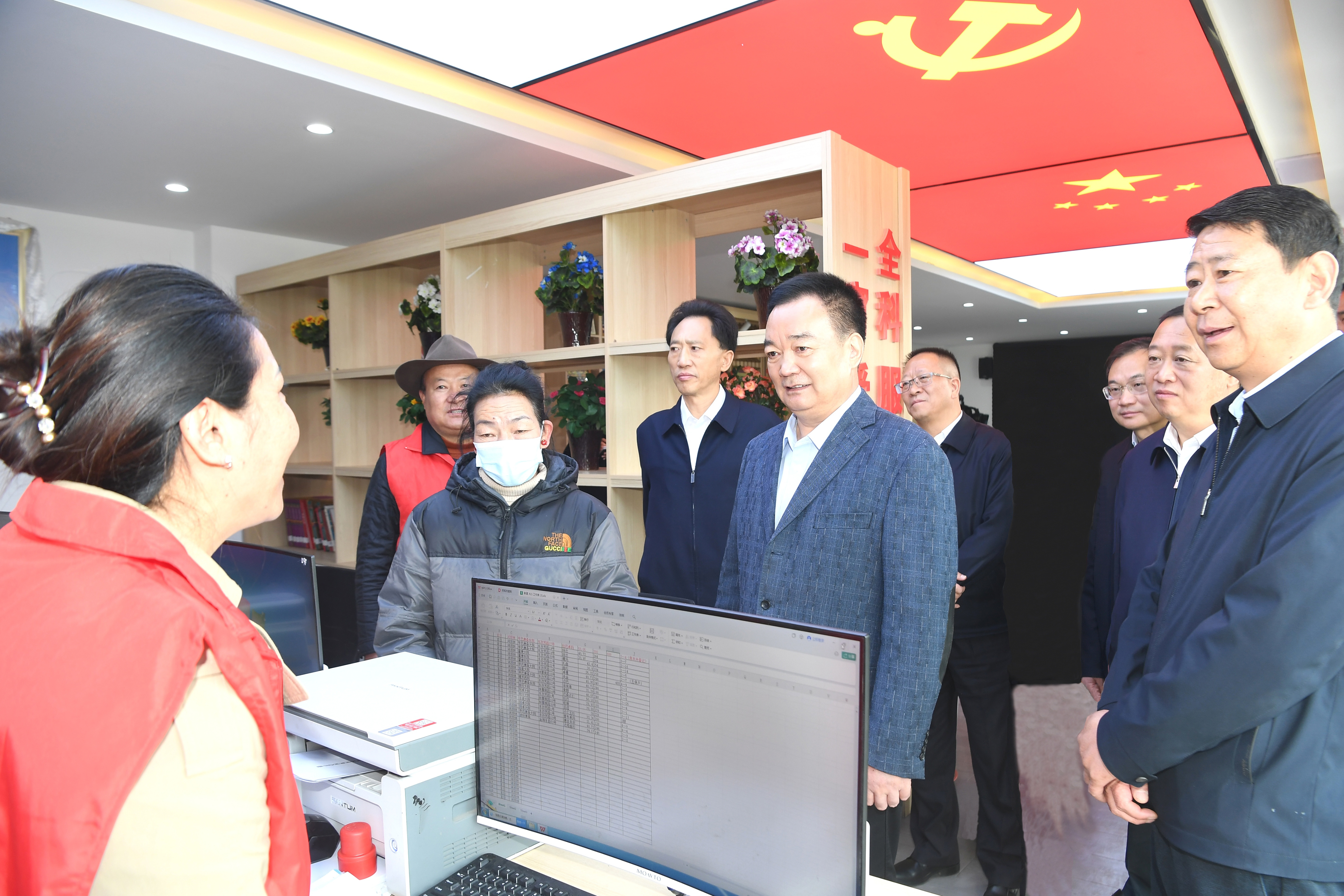 4月16日上午,自治區黨委書記王君正深入區直部門、街道社區調研。這是王君正在拉薩市城關區吉日街道河壩林社區便民服務中心與工作人員面對面交流,深入了解社區服務群眾、推進基層治理等工作。記者 李洲 攝