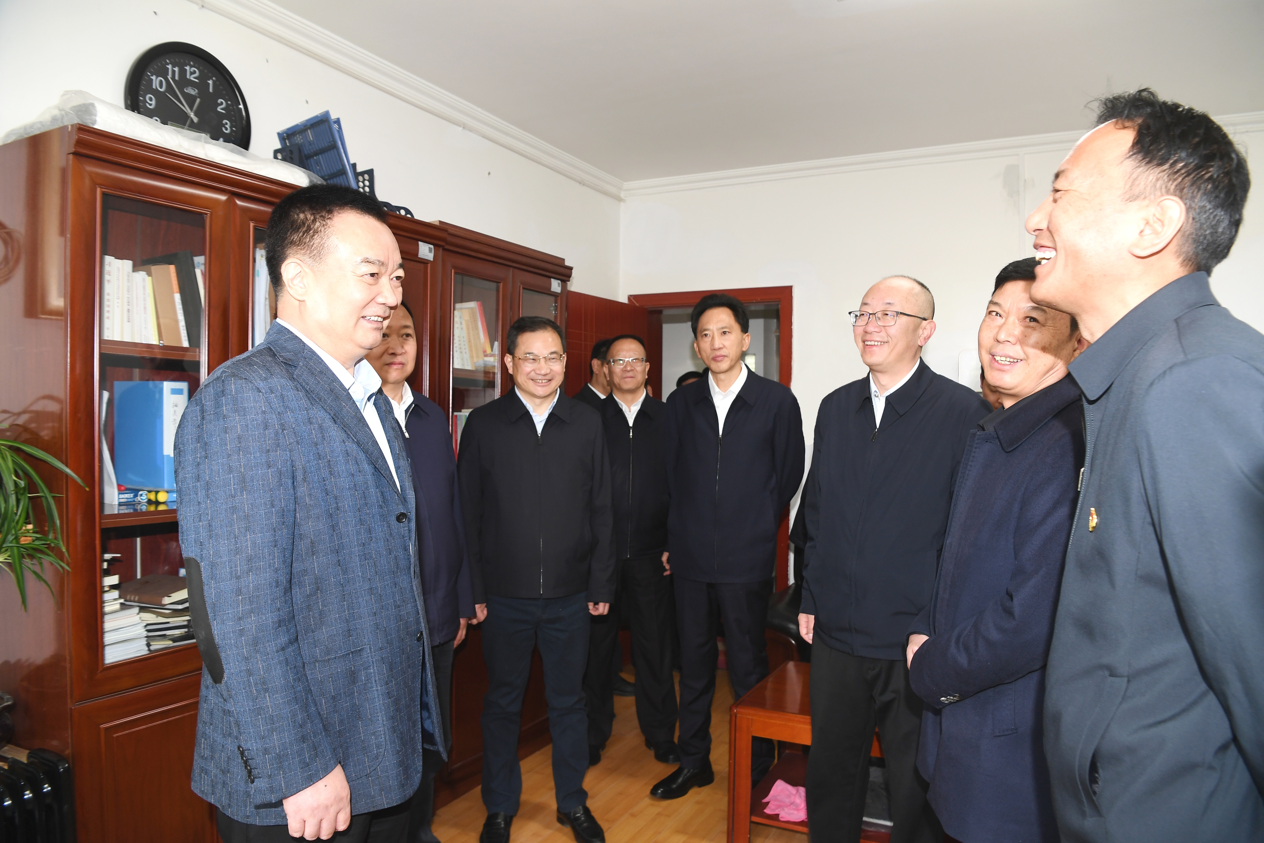 4月16日上午,王君正專程前往我區新組建的3家單位走訪調研。這是王君正在自治區黨委社會工作部實地了解機構建設、制度建設、信訪工作等情況。記者 李洲 攝