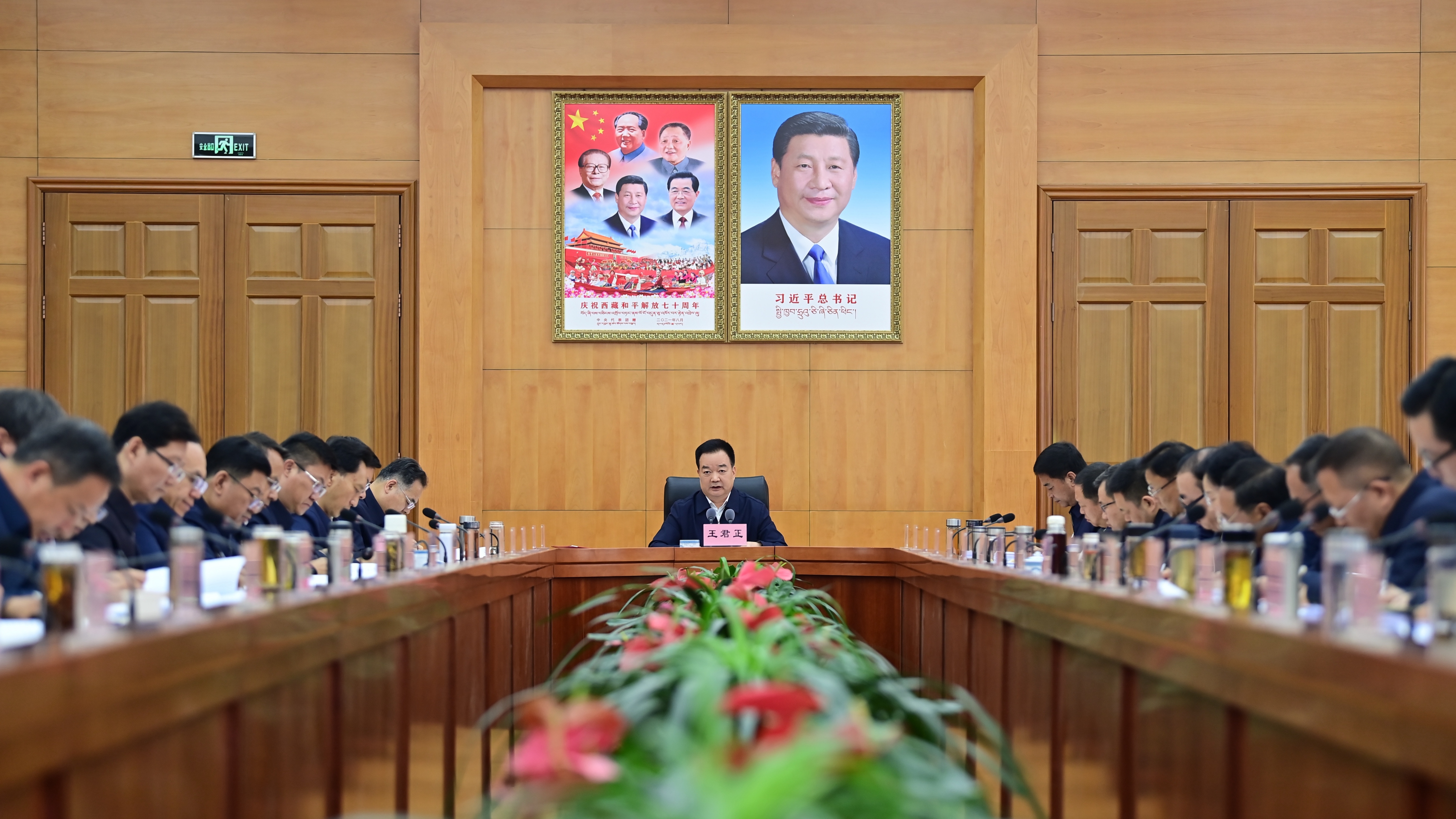 近日,自治區黨委書記王君正主持召開自治區黨委常委會(擴大)會議,聽取全區群眾身邊不正之風和腐敗問題集中整治工作情況匯報,安排部署有關工作。這是會議現場。記者 旦增西旦 攝