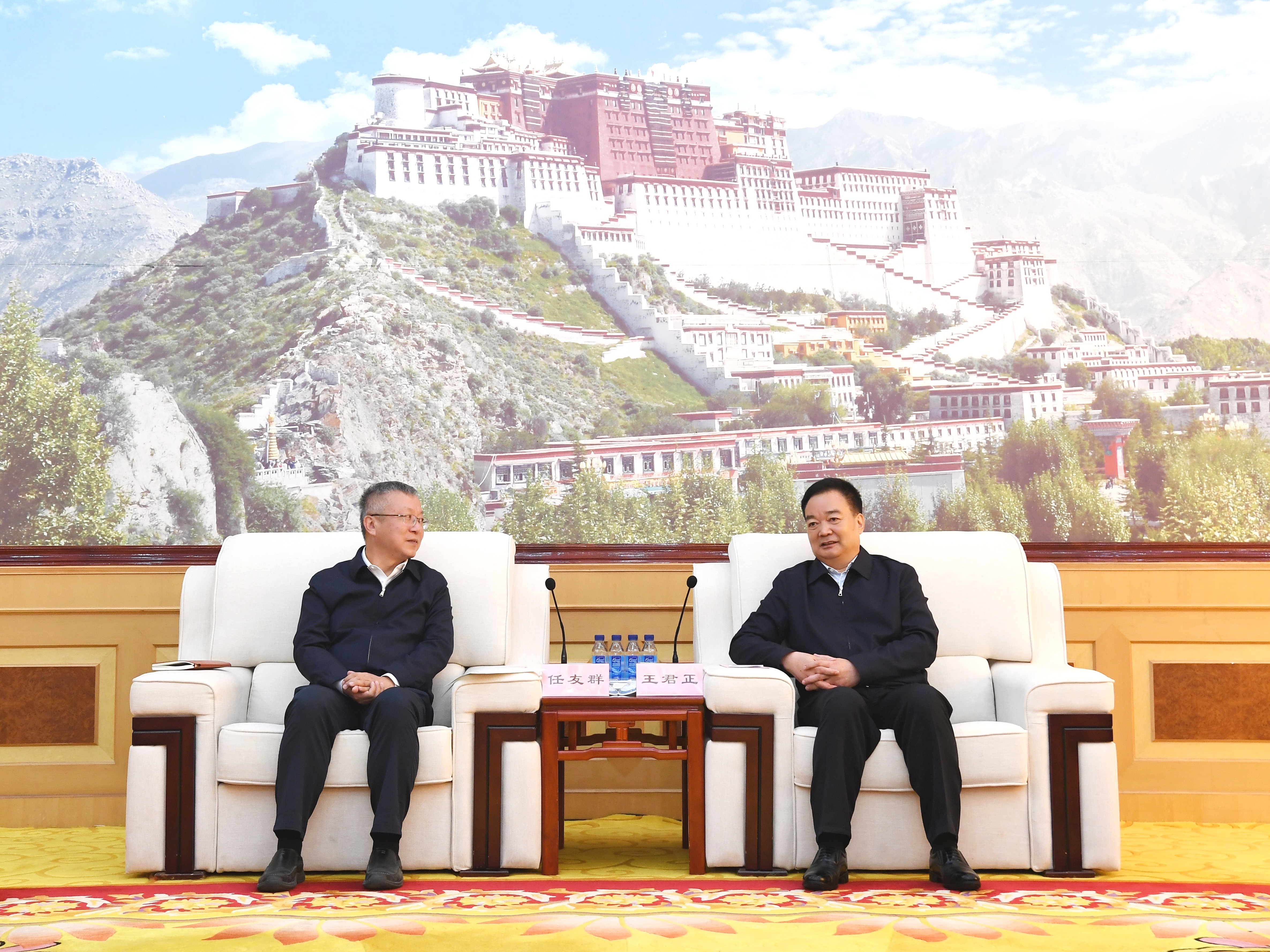 8月18日,自治區黨委書記王君正在拉薩與山東大學黨委書記任友群,校長、中國工程院院士李術才率隊的赴藏考察團座談。這是座談現場?!∮浾摺±钪蕖z
