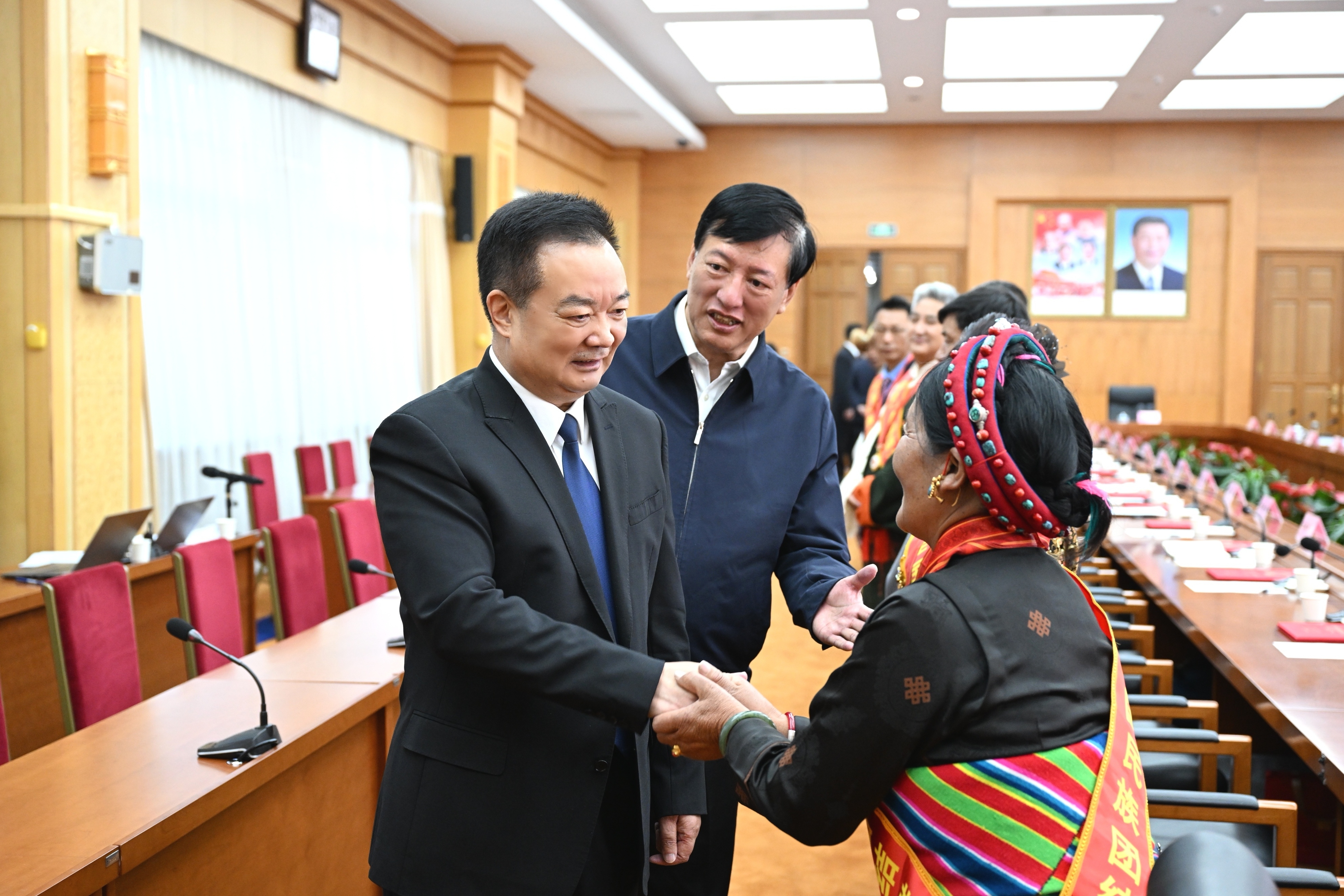 王君正強調(diào),民族工作是黨和國家治國理政的重要內(nèi)容。要堅持黨的領(lǐng)導(dǎo),深刻領(lǐng)悟“兩個確立”的決定性意義,增強“四個意識”、堅定“四個自信”、做到“兩個維護”,堅定不移貫徹黨的民族政策,不斷推進民族團結(jié)進步事業(yè),加快中華民族共同體建設(shè),堅定不移走中國特色解決民族問題的正確道路。要著力構(gòu)筑中華民族共有精神文化家園,深入開展愛國主義教育、“四史”教育、西藏地方和祖國關(guān)系史教育,用群眾聽得懂的語言和喜聞樂見的方式,面向全社會講好民族團結(jié)進步故事,傳遞民族團結(jié)進步正能量,引導(dǎo)各族群眾牢固樹立正確的國家觀、歷史觀、民族觀、文化觀、宗教觀,像愛護眼睛一樣愛護民族團結(jié)、像珍視生命一樣珍視民族團結(jié)。要促進各民族交往交流交融,結(jié)合對口援藏工作、西藏班辦學(xué)、旅游經(jīng)商等,積極建立各民族相互嵌入的社會結(jié)構(gòu)和社區(qū)環(huán)境,將民族團結(jié)進步創(chuàng)建抓在經(jīng)常、融入日常、做到平常,促進各民族像石榴籽一樣緊緊抱在一起。要堅持共同團結(jié)奮斗、共同繁榮發(fā)展,落實“三個賦予一個有利于”總要求,把群眾身邊的小事當(dāng)作各級黨委、政府的大事來抓,關(guān)心群眾生活、注意方式方法,站在群眾立場思考問題,帶著感情辦好群眾關(guān)心的事情,想方設(shè)法增加群眾收入,更好滿足各族群眾對美好生活的向往,努力推動各民族共同富裕。要發(fā)揮典型引路作用,培養(yǎng)和選樹更多可親、可信、可敬的民族團結(jié)典型,大力宣傳民族團結(jié)進步模范的感人事跡,讓各族群眾學(xué)有標(biāo)桿、做有榜樣,在全社會形成崇尚模范、學(xué)習(xí)模范、爭當(dāng)模范的濃厚氛圍,匯聚中華民族共同體建設(shè)合力。