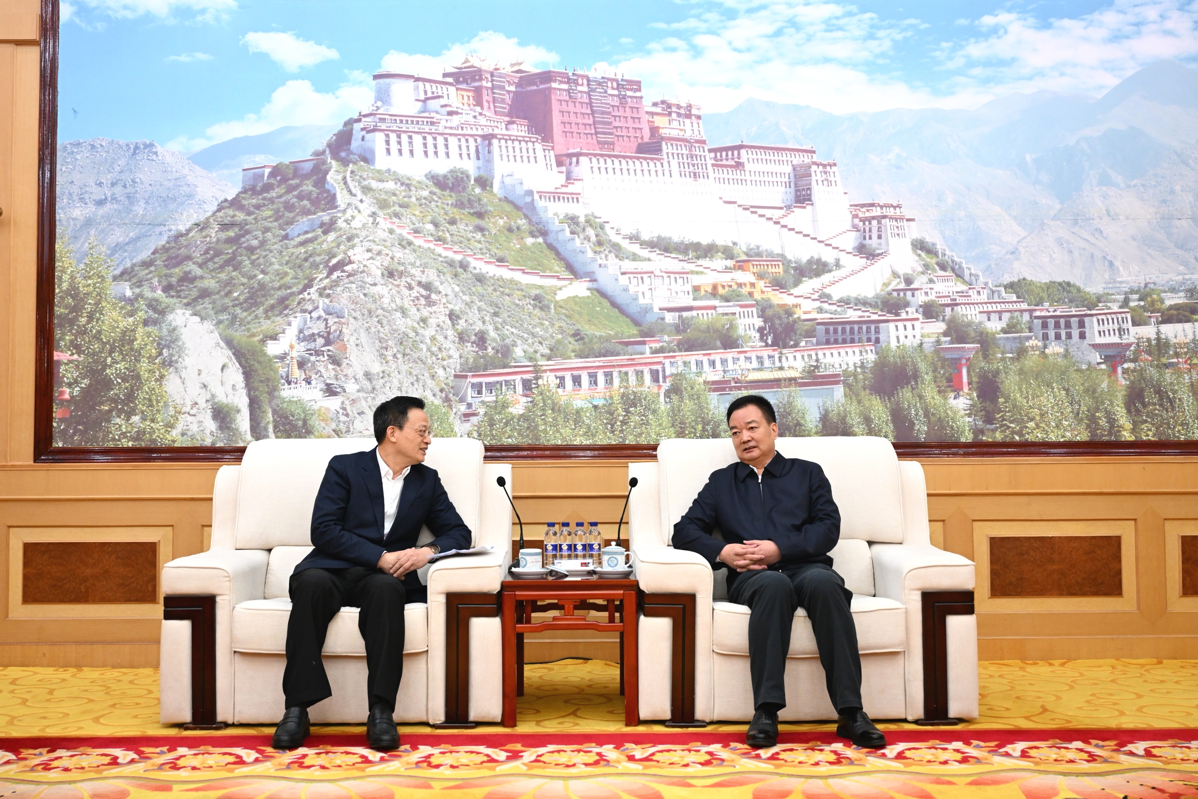 日前,自治區黨委書記王君正在拉薩會見了湖北省委常委、襄陽市委書記王祺揚。這是會見現場。記者 旦增西旦 攝