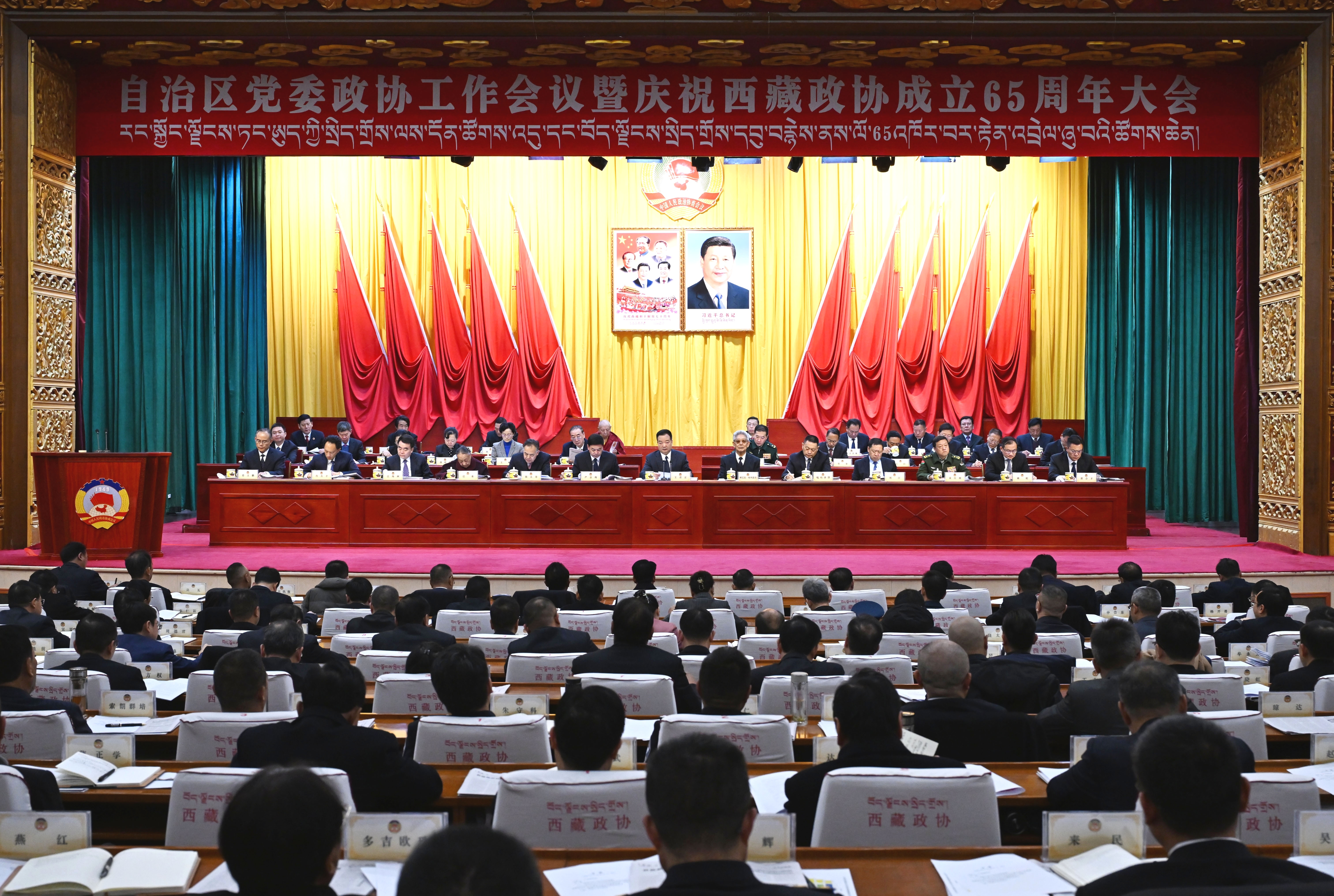 十一月二十六日上午,自治區黨委政協工作會議暨慶祝西藏政協成立65周年大會在拉薩召開。這是大會現場。 本網記者 李洲 攝