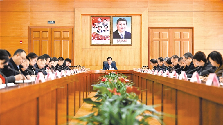 12月2日上午,自治區黨委書記王君正在自治區黨委辦公廳系統調研。這是座談會現場。記者 李洲 攝