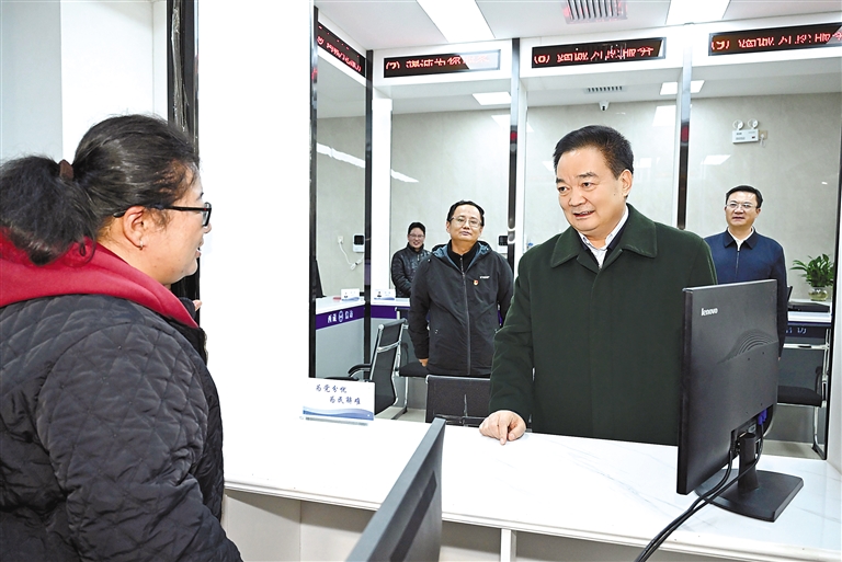 12月16日,自治區(qū)黨委書記王君正來到自治區(qū)信訪局調研并現場接待來訪群眾。這是王君正在接訪大廳了解相關工作情況。記者 李洲 攝
