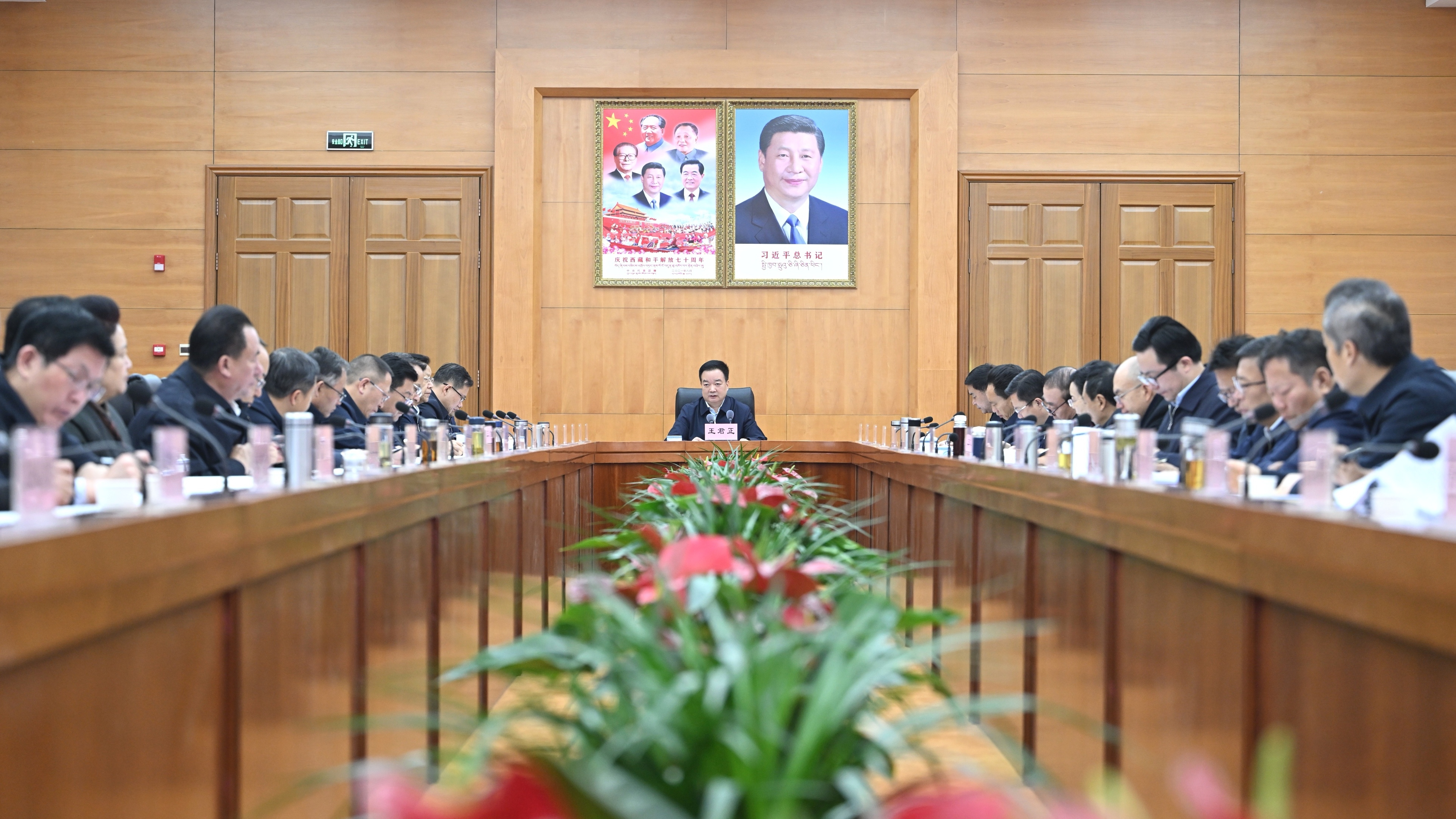 2月19日上午,自治區黨委書記王君正主持召開自治區黨委常委會(擴大)會議。這是會議現場。記者 旦增西旦 攝