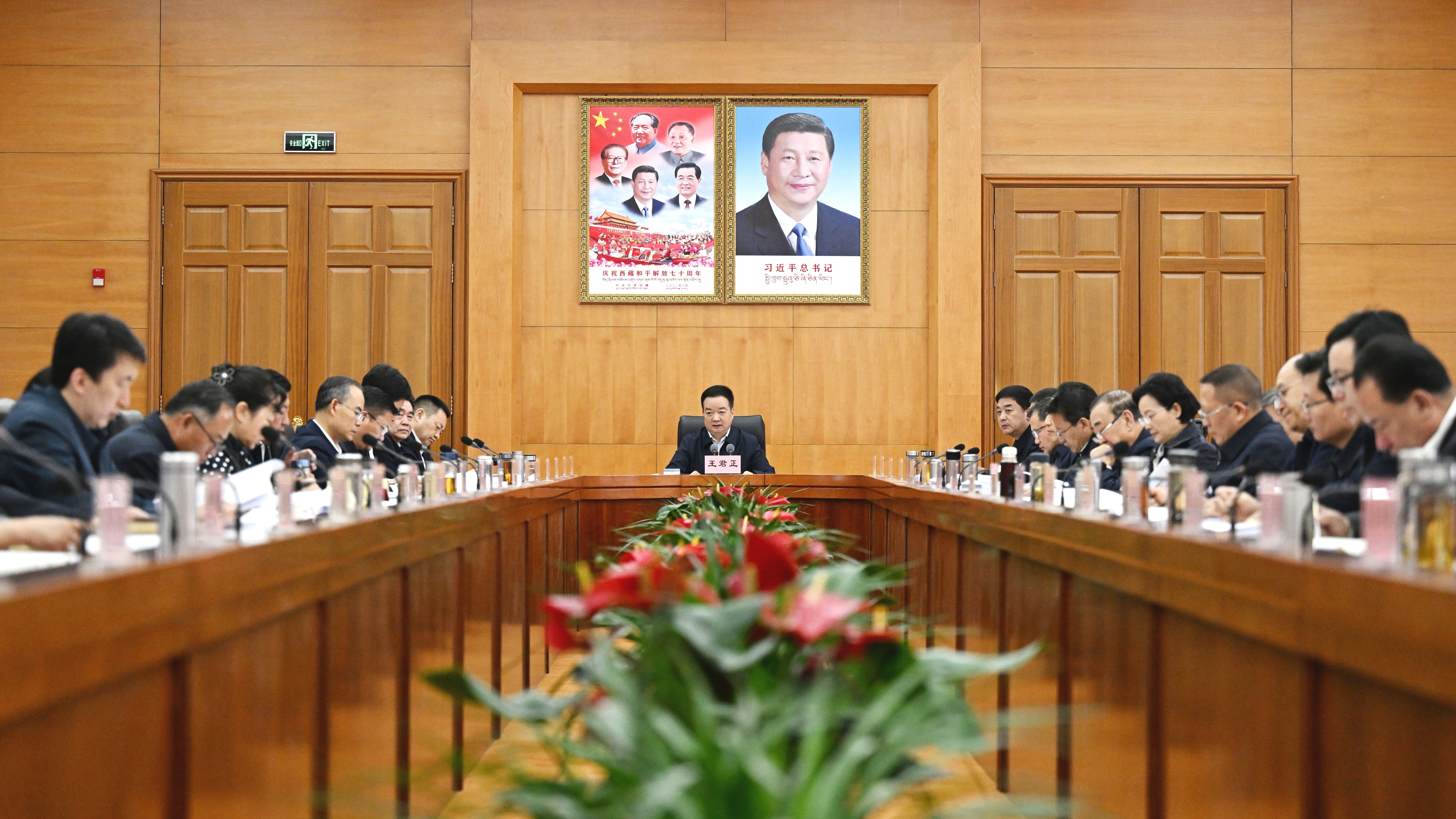 近日,自治區黨委書記王君正主持召開自治區黨委常委會(擴大)會議。這是會議現場。記者 李洲 攝
