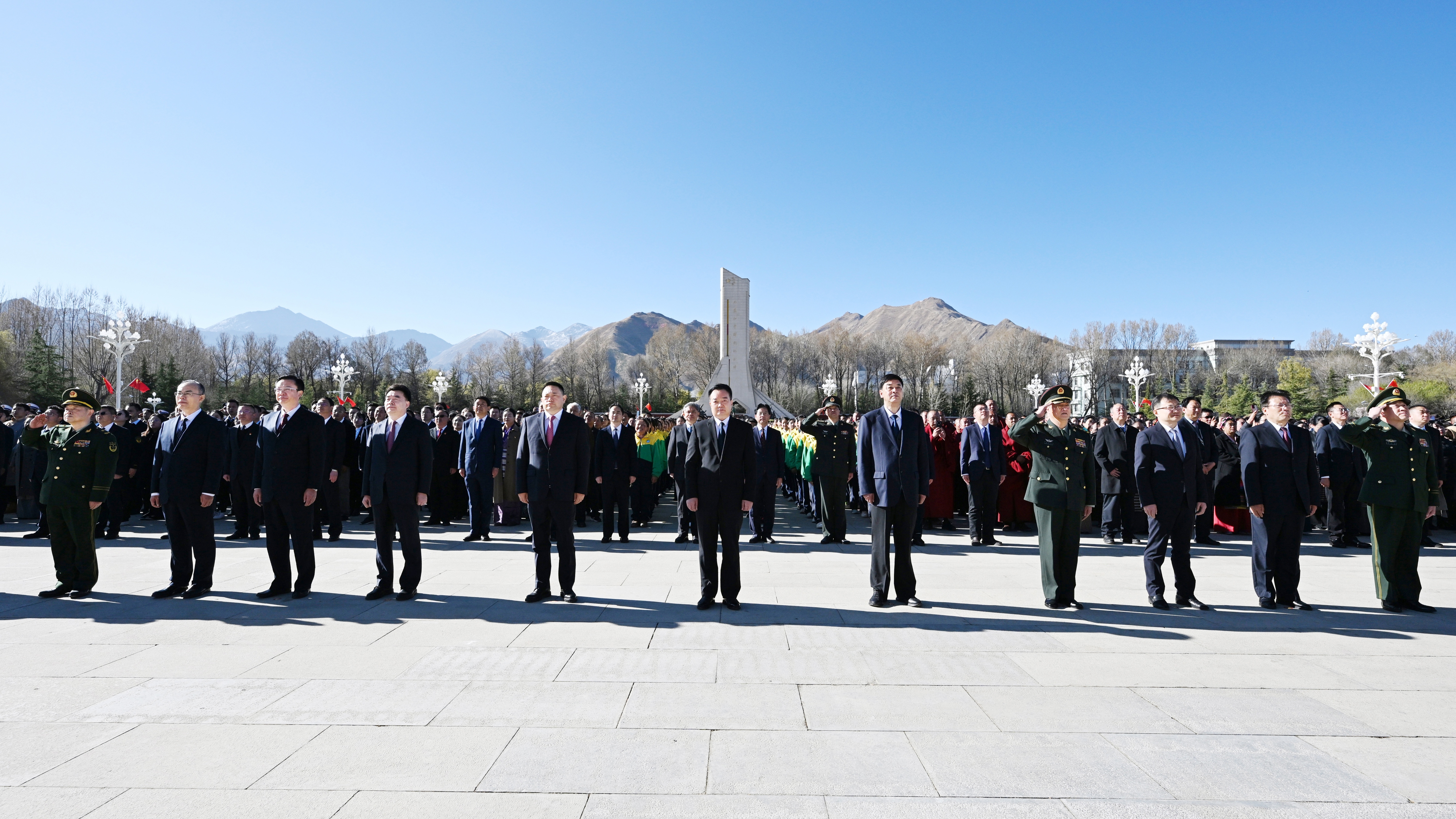 自治區省級領導同志,西藏軍區、武警西藏總隊、空軍拉薩基地主要負責同志,區(中)直和拉薩市直單位負責同志,學校師生、離退休干部職工、居民群眾和僧尼代表參加。