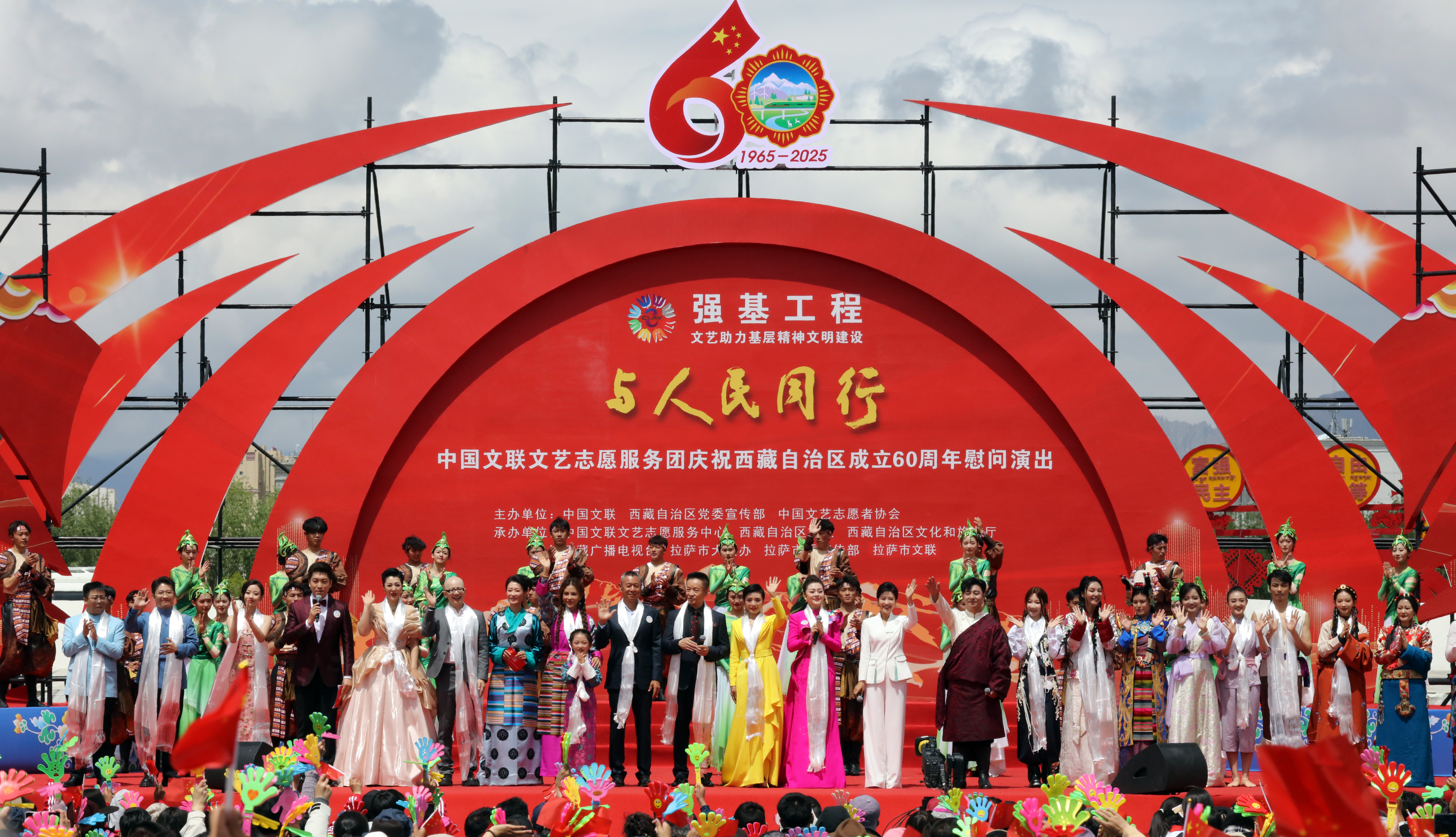 圖為中國文聯文藝志愿服務團慶祝西藏自治區成立60周年慰問演出現場。記者 次旺 攝