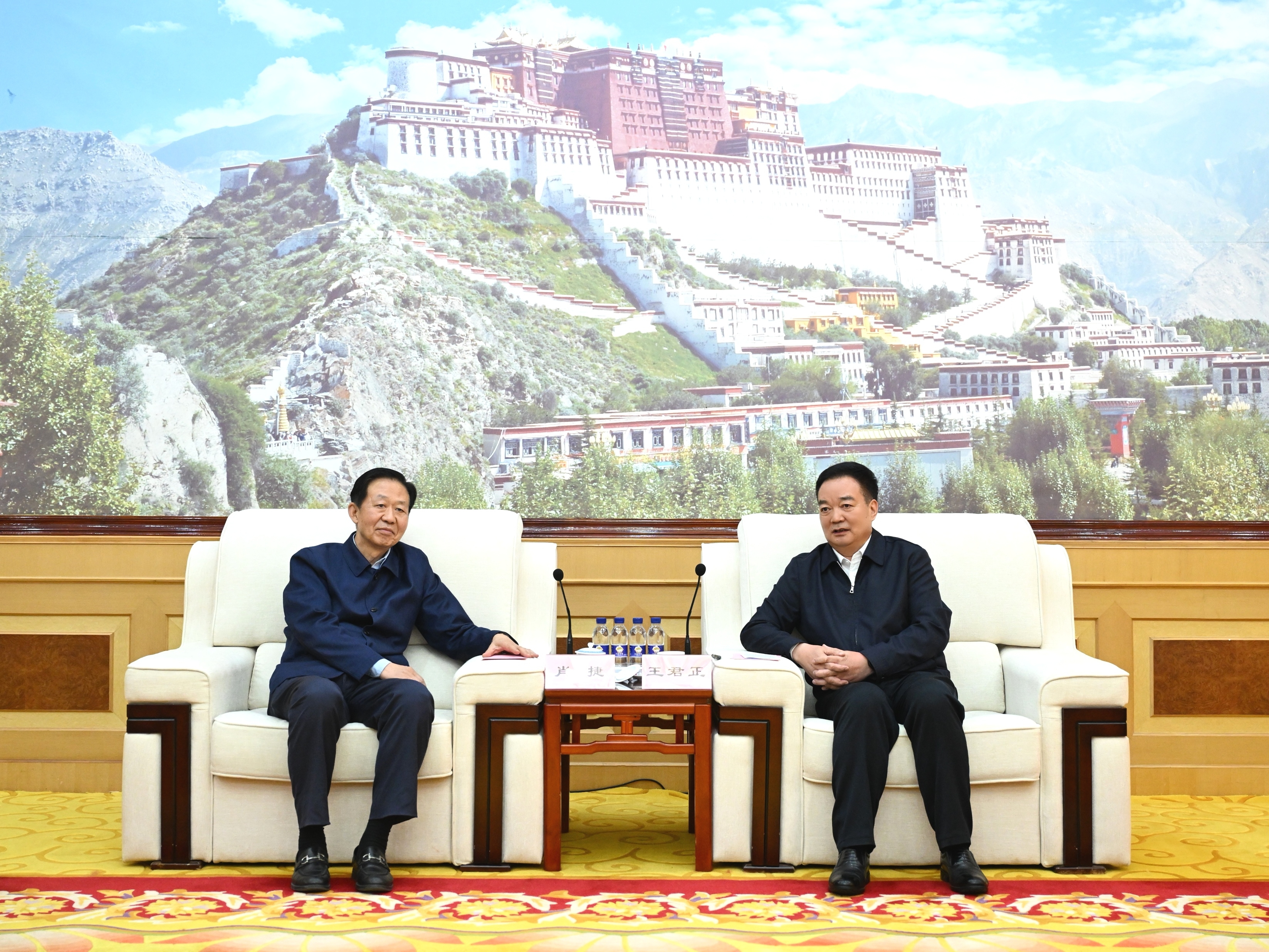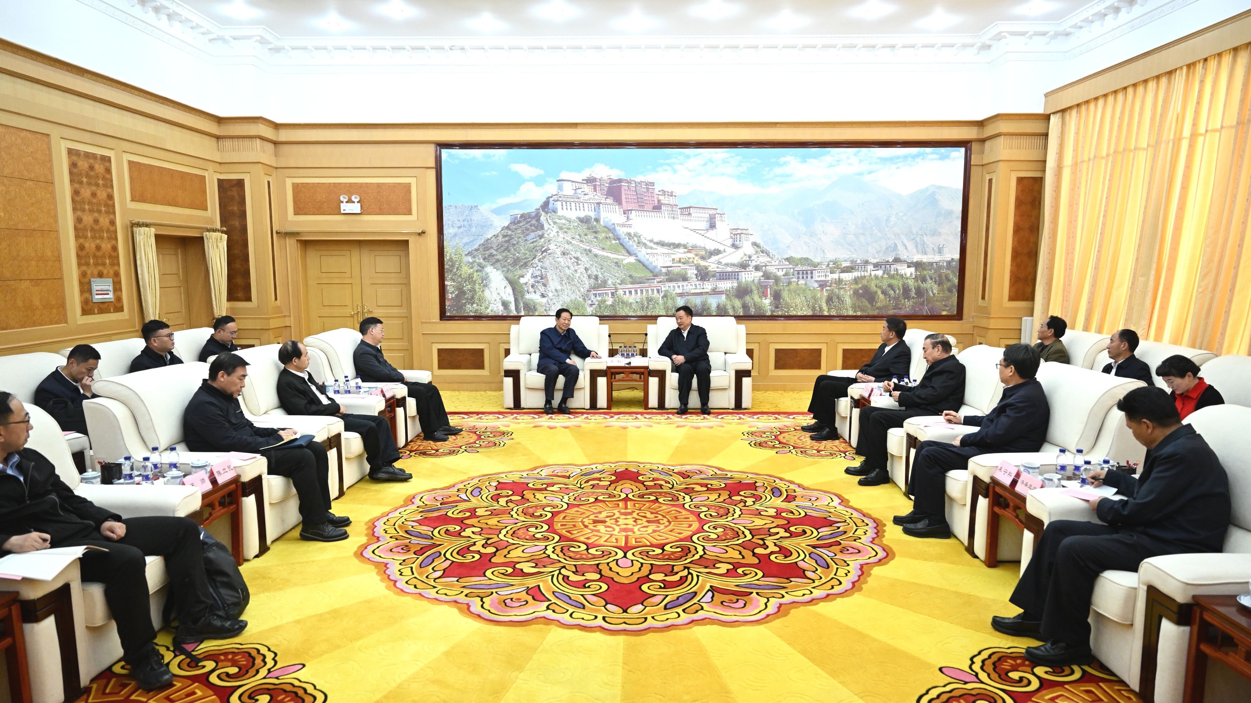5月27日下午,自治區黨委書記王君正在拉薩與全國人大常委會副委員長肖捷率隊的全國人大常委會專題調研組座談。這是座談現場。記者 旦增西旦 攝