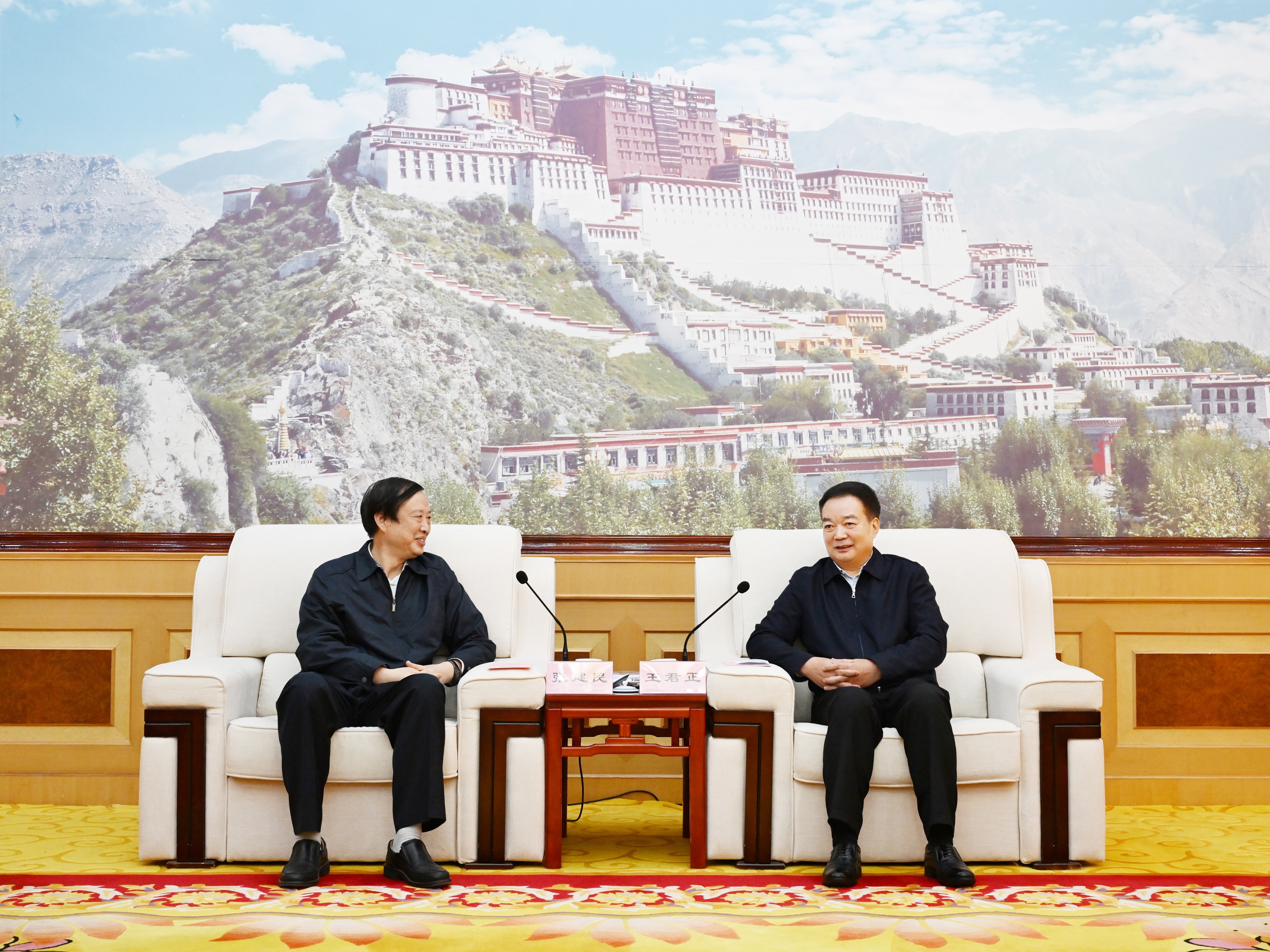 6月17日,自治區黨委書記王君正在拉薩與國家煙草專賣局黨組書記、局長張建民一行座談。