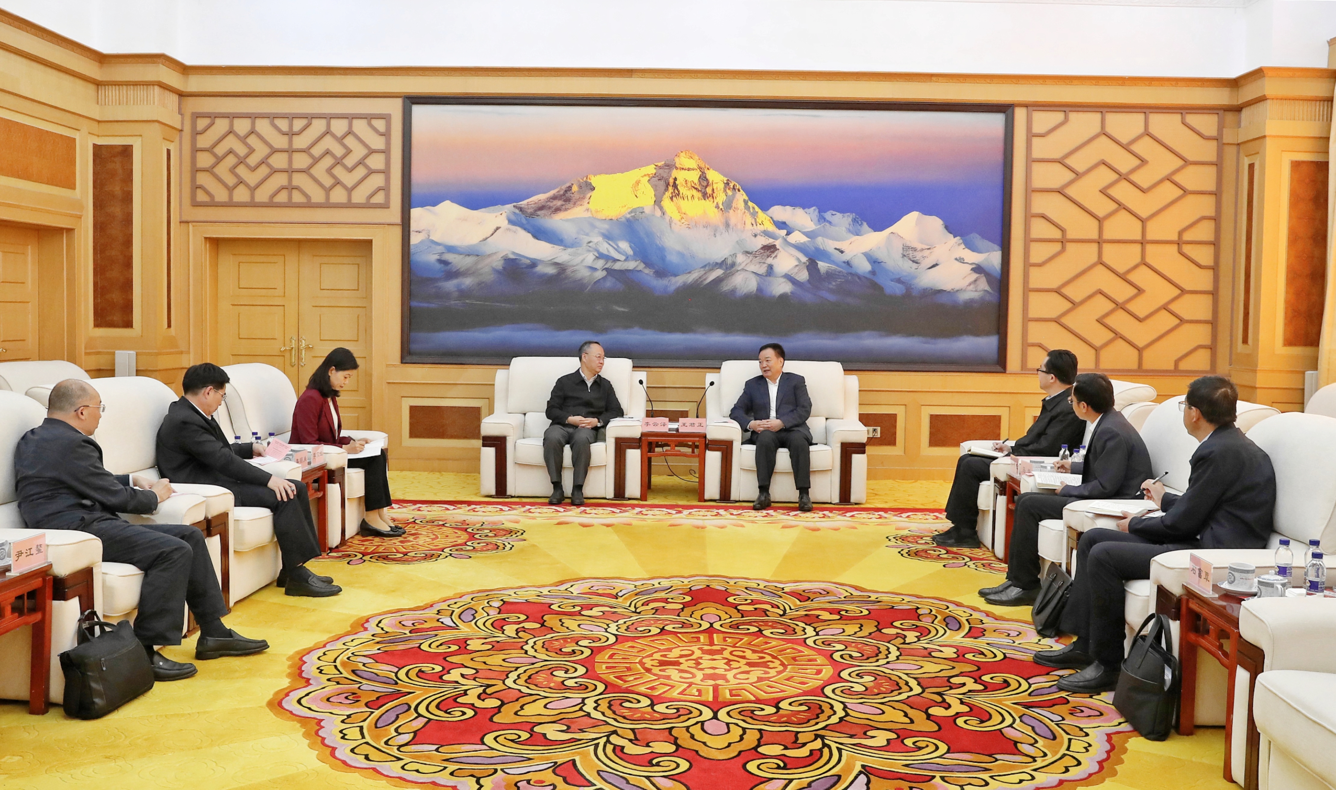 近日,自治區(qū)黨委書記王君正在拉薩與國家金融監(jiān)督管理總局黨委書記、局長李云澤一行座談。