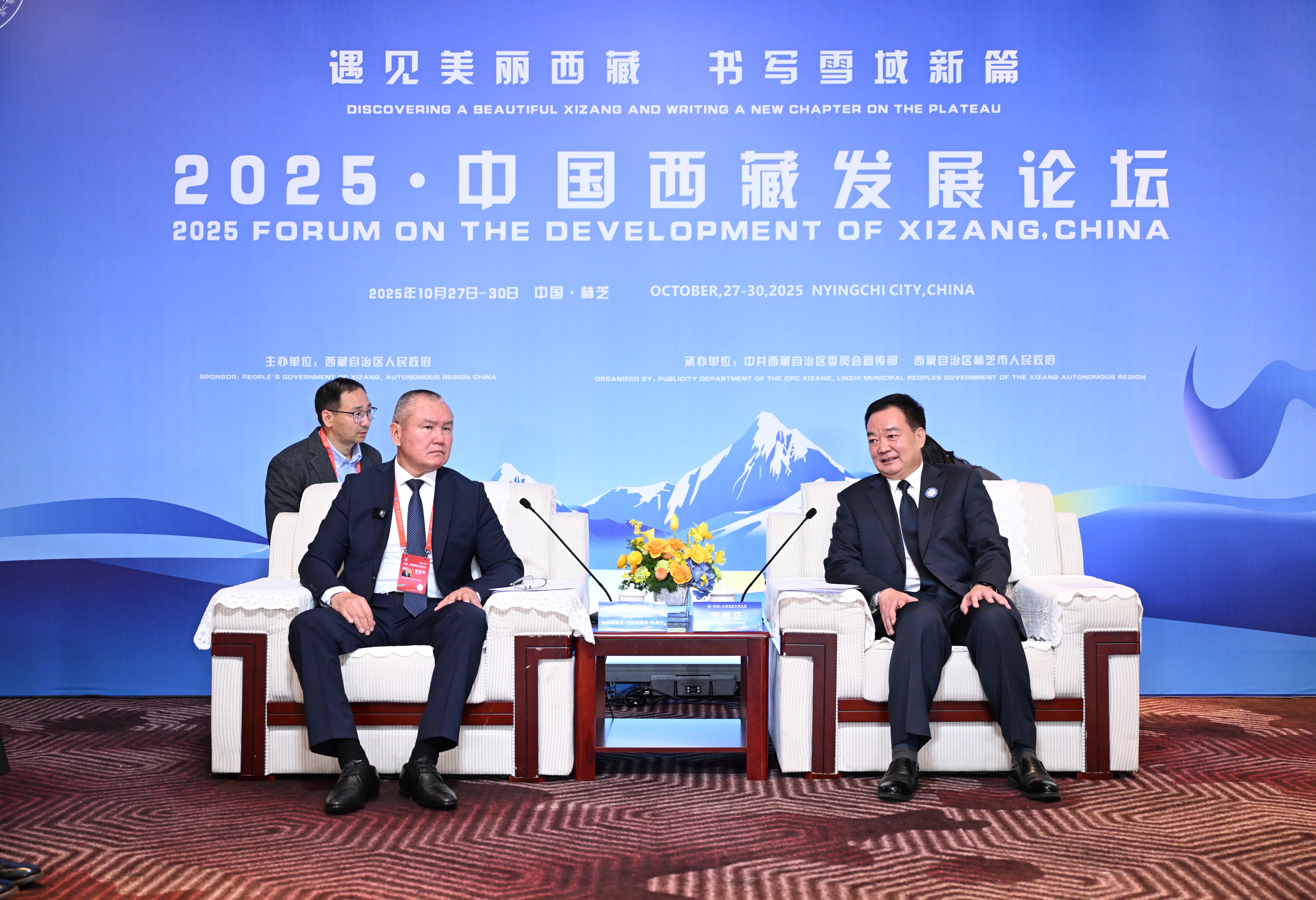 2025?中國西藏發展論壇系列活動10月27日至30日在林芝舉辦。28日,自治區黨委書記王君正在林芝會見參加本次論壇的外國政要和駐華使節。這是王君正會見吉爾吉斯共和國總統駐伊塞克湖州全權代表熱季根諾夫。記者 旦增西旦 攝