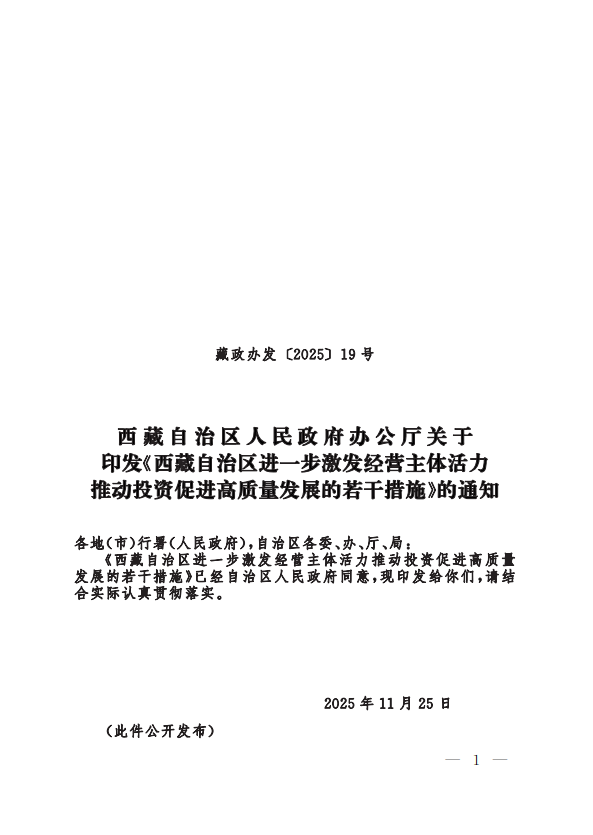 《西藏自治區進一步激發經營主體活力推動投資促進高質量發展的若干措施》已經自治區人民政府同意,現印發給你們,請結合實際認真貫徹落實。