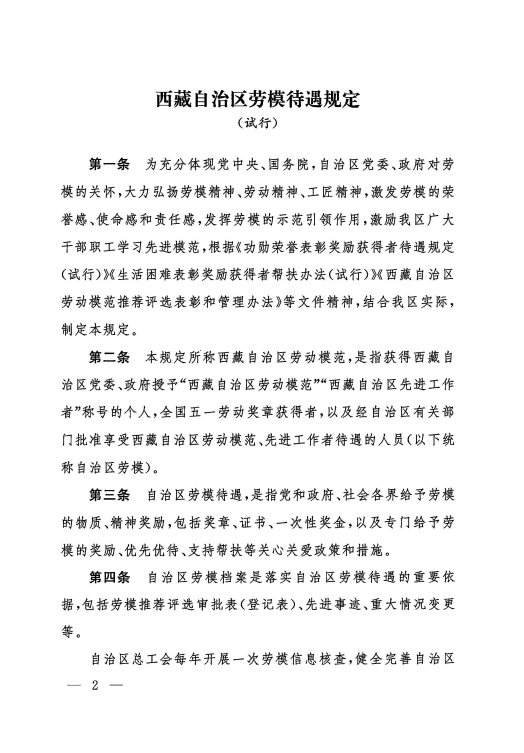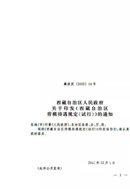 西藏自治區人民政府關于印發《西藏自治區勞模待遇規定(試行)》的通知