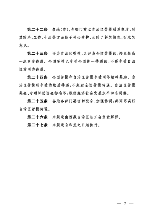 現將《西藏自治區勞模待遇規定(試行)》印發給你們,請認真抓好落實。