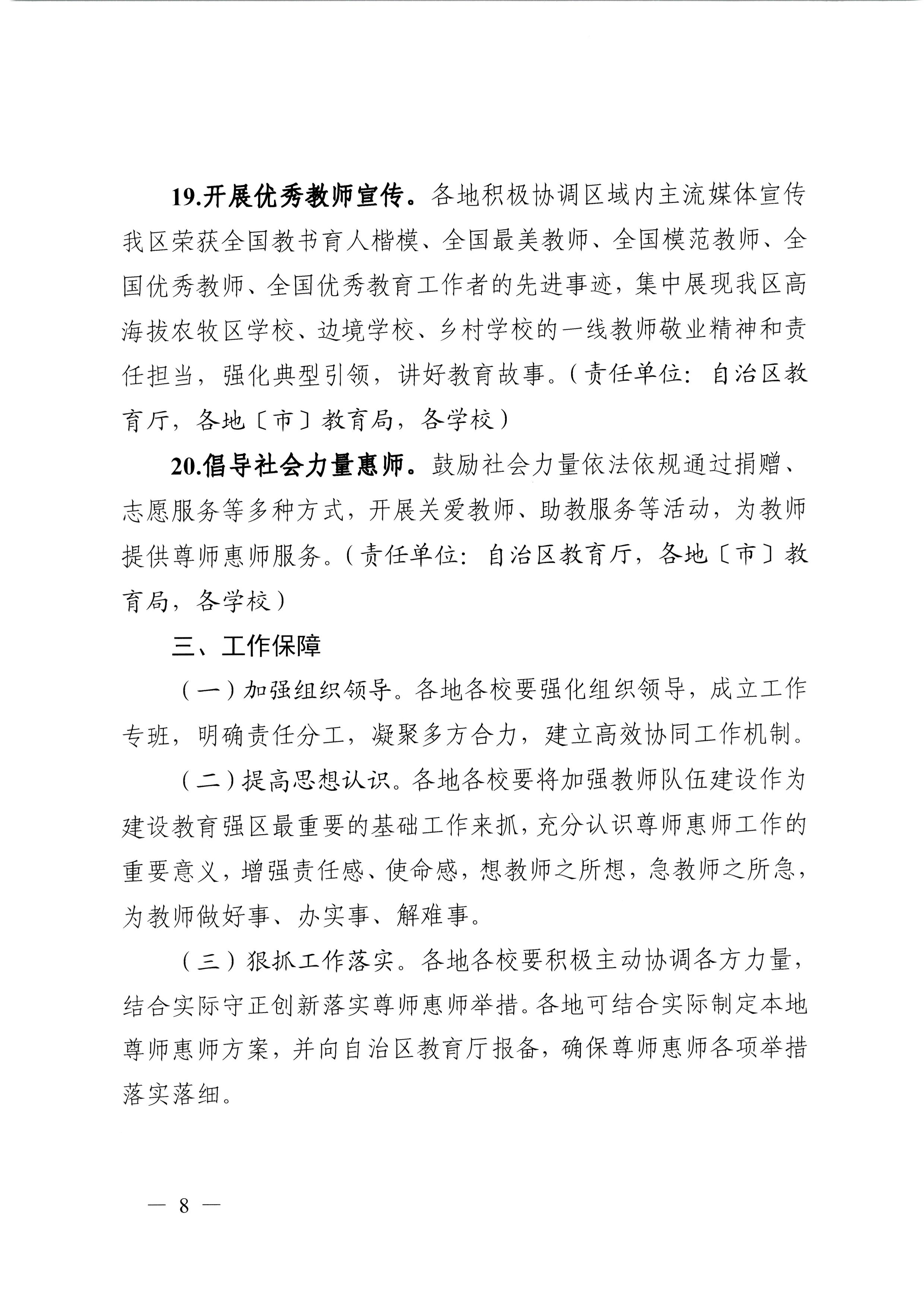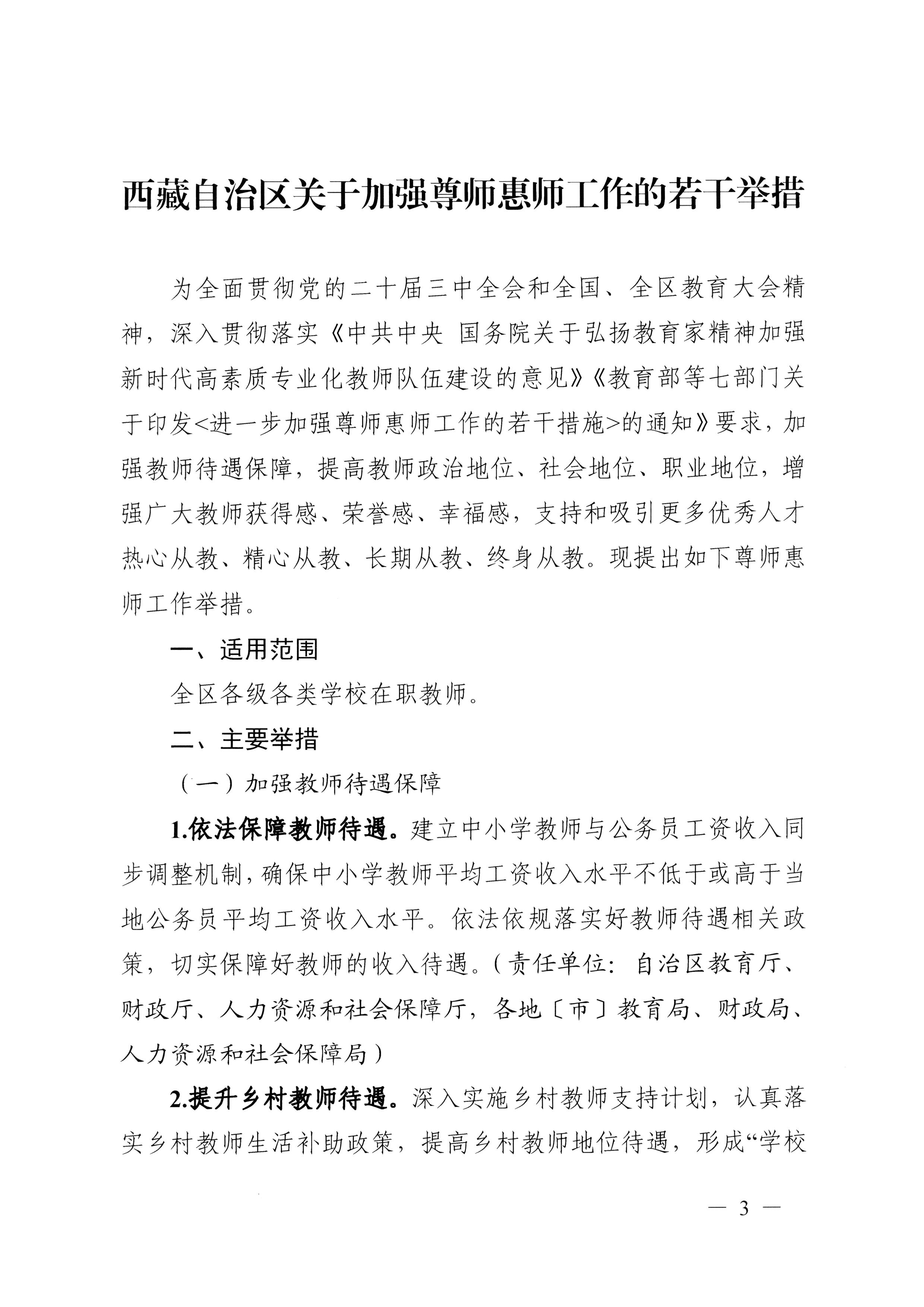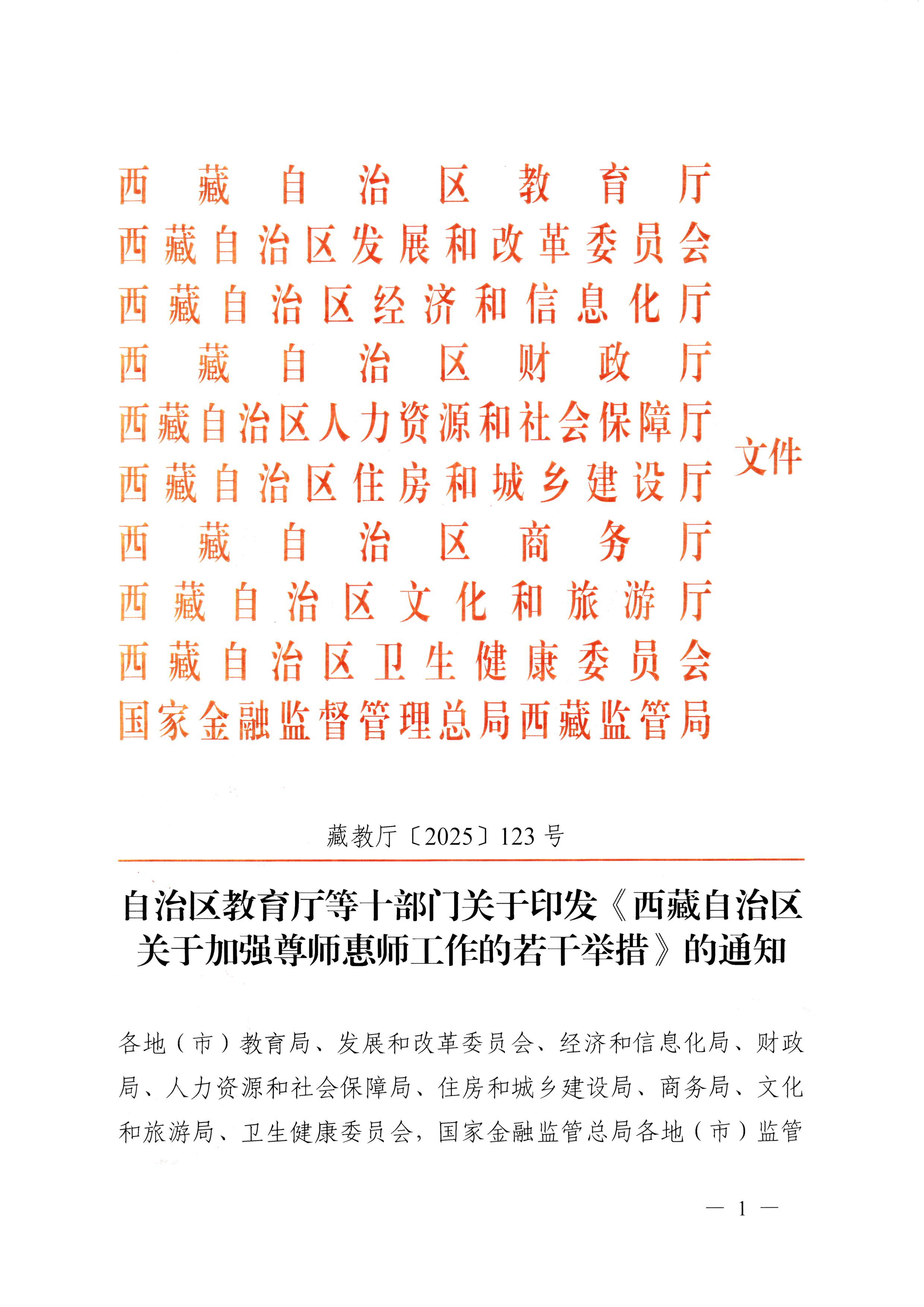 自治區教育廳等十部門關于印發《西藏自治區關于加強尊師惠師工作的若干舉措》的通知
